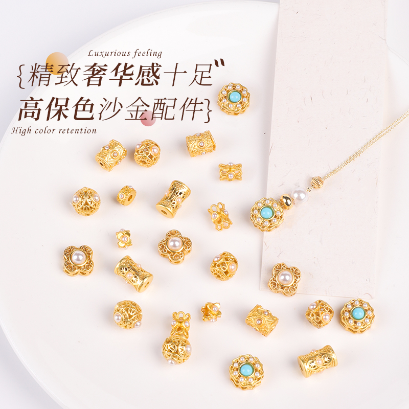 古法沙金diy配件材料手链项链18k小滴溜珍珠桶珠隔珠手串金珠配饰
