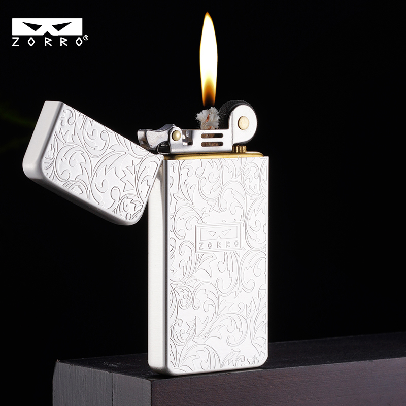 ZORRO二代包银唐草超薄煤油打火机防风经典砂轮个性创意高档火机