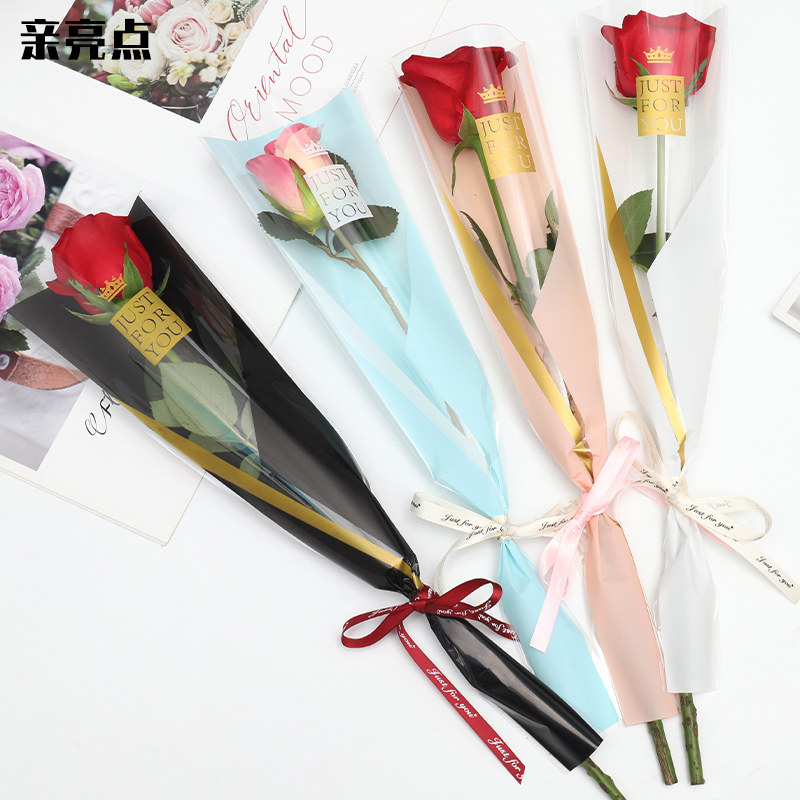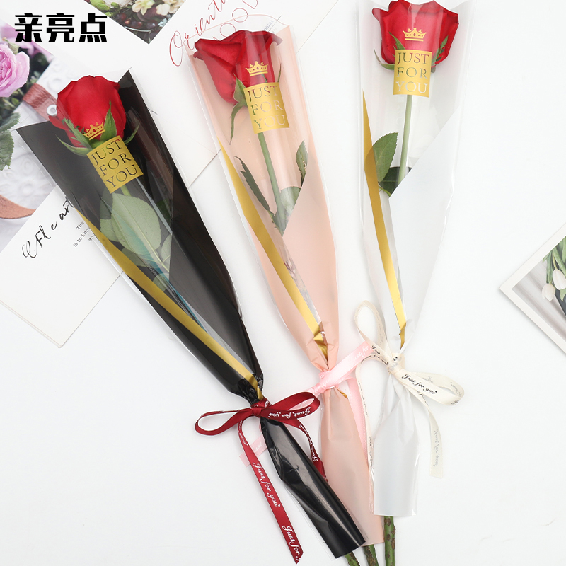 亲亮点新款皇冠单支袋玫瑰包装袋花束三角袋花店花艺鲜花包装材料