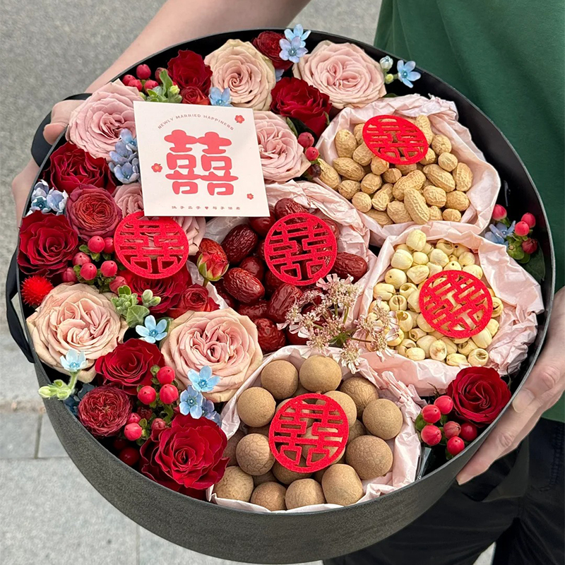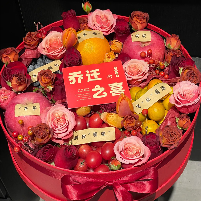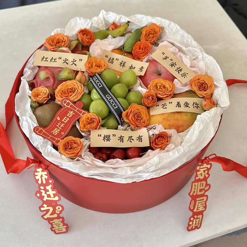 乔迁之喜婚庆圆形水果鲜花礼盒diy材料全套圆盒空盒手工制作送礼,浙江 金华