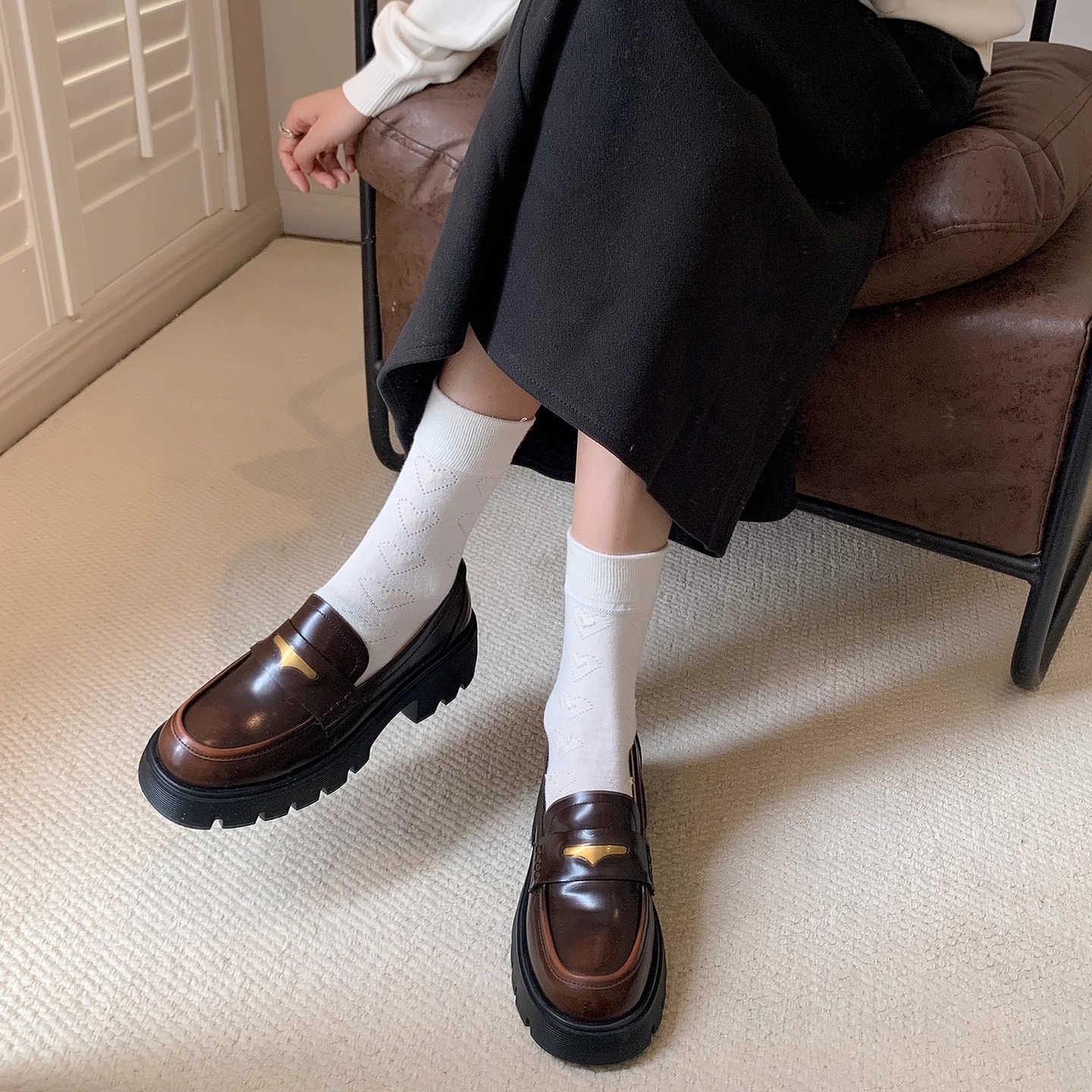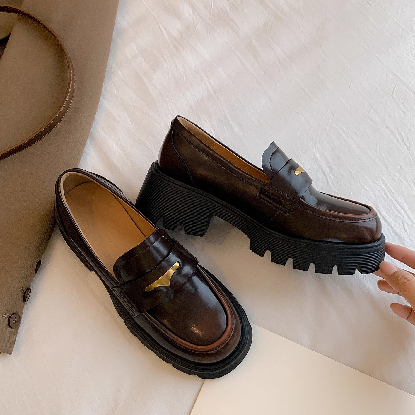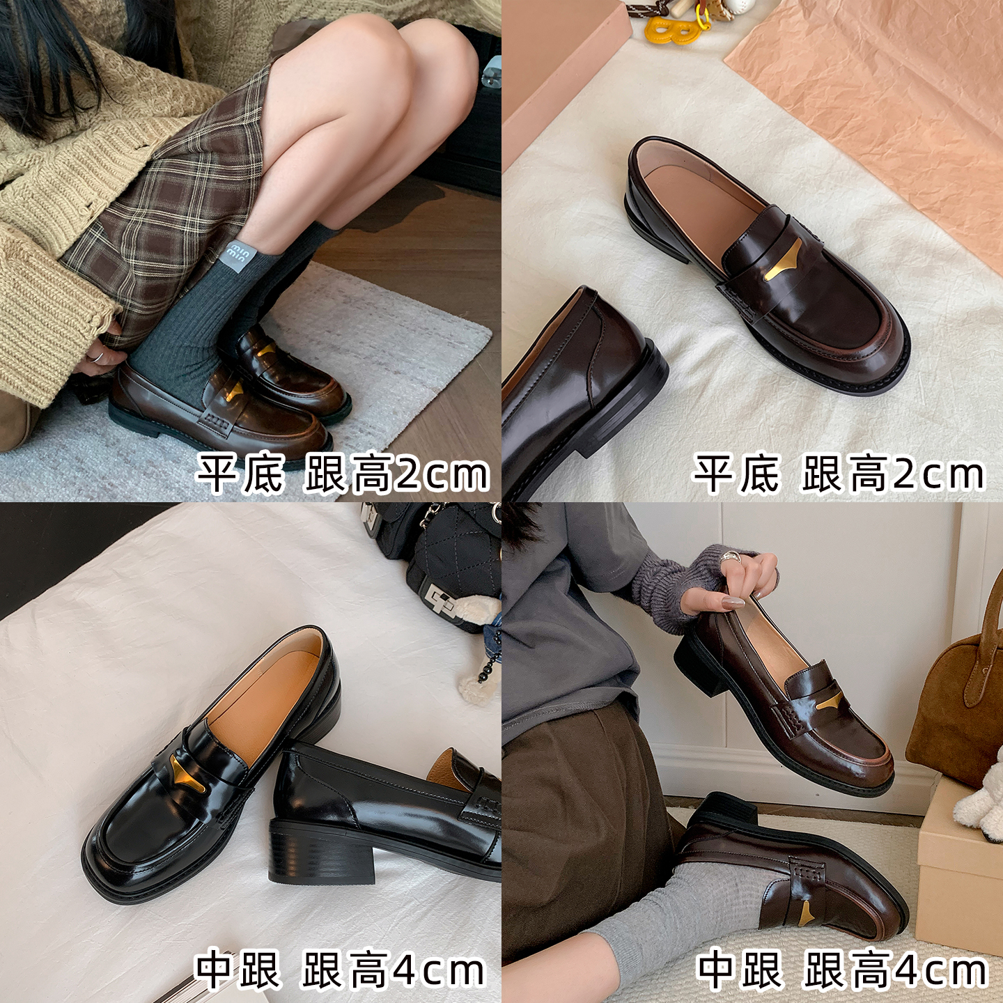 喵唔的天空英伦风粗跟厚底乐福鞋女秋冬轻熟一脚蹬百搭单鞋小皮鞋,江苏 南京
