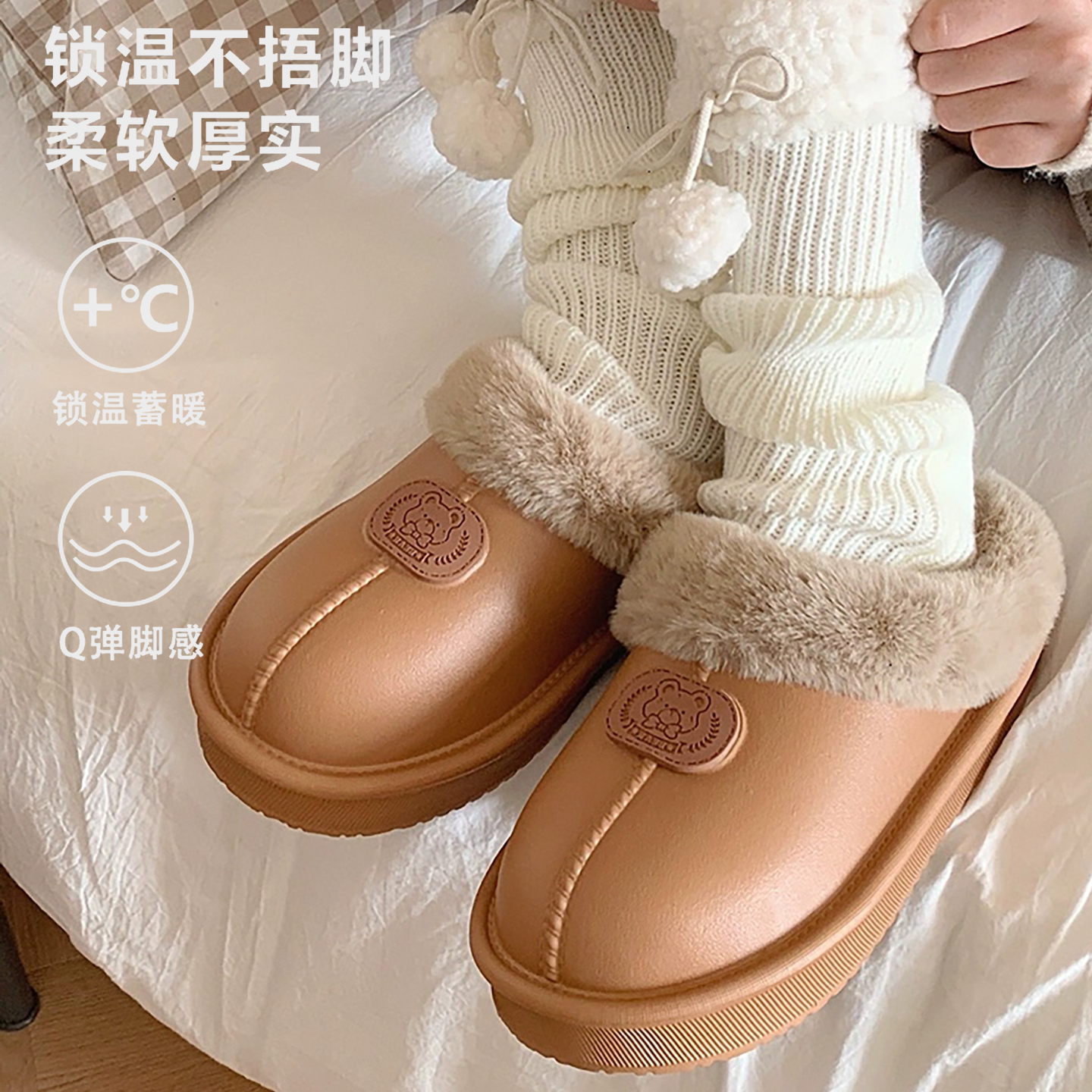 买一送一EVA加绒加厚棉拖女软底防水防滑情侣居家外穿半拖棉鞋男,福建 福州