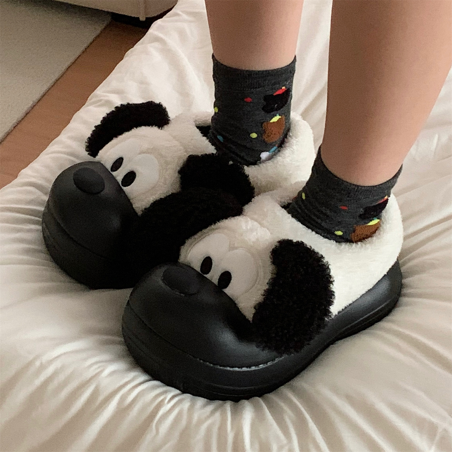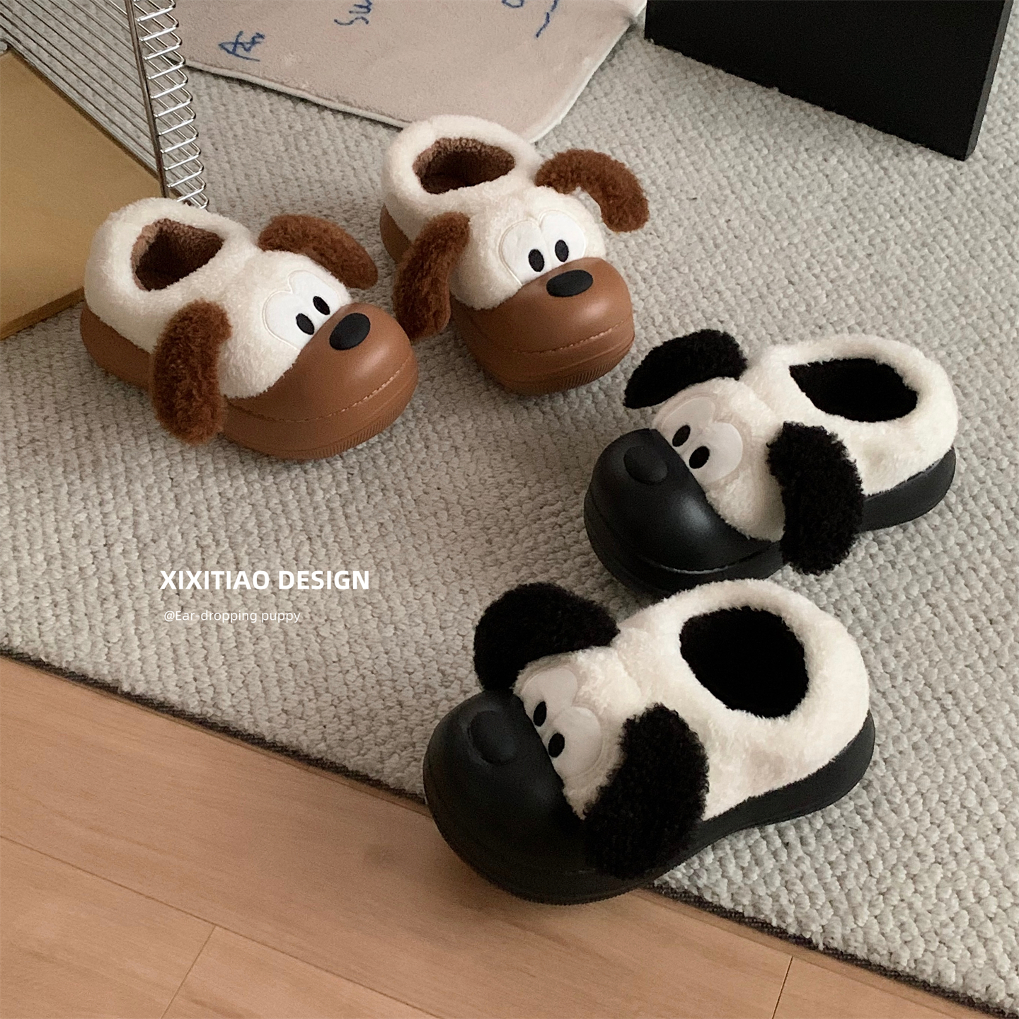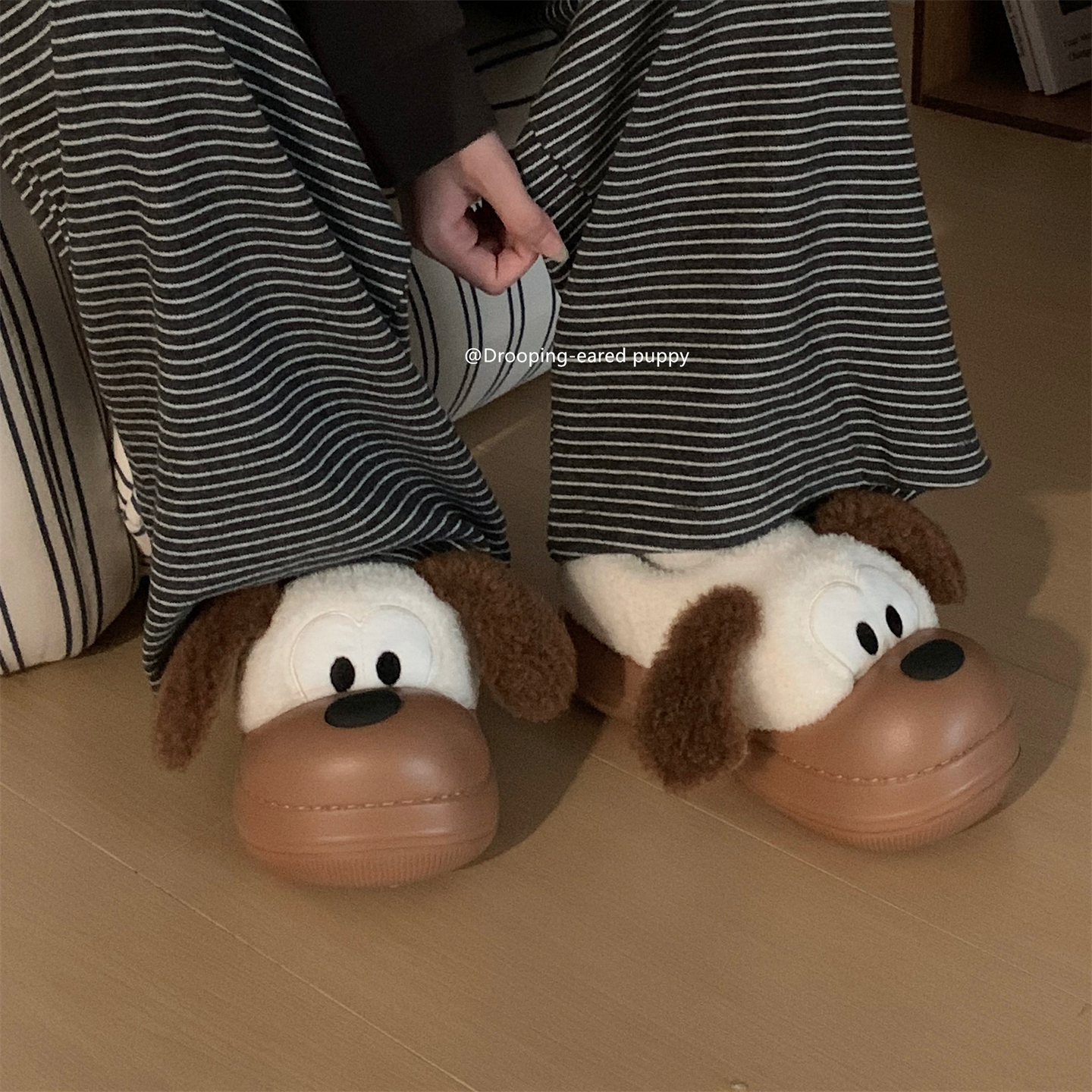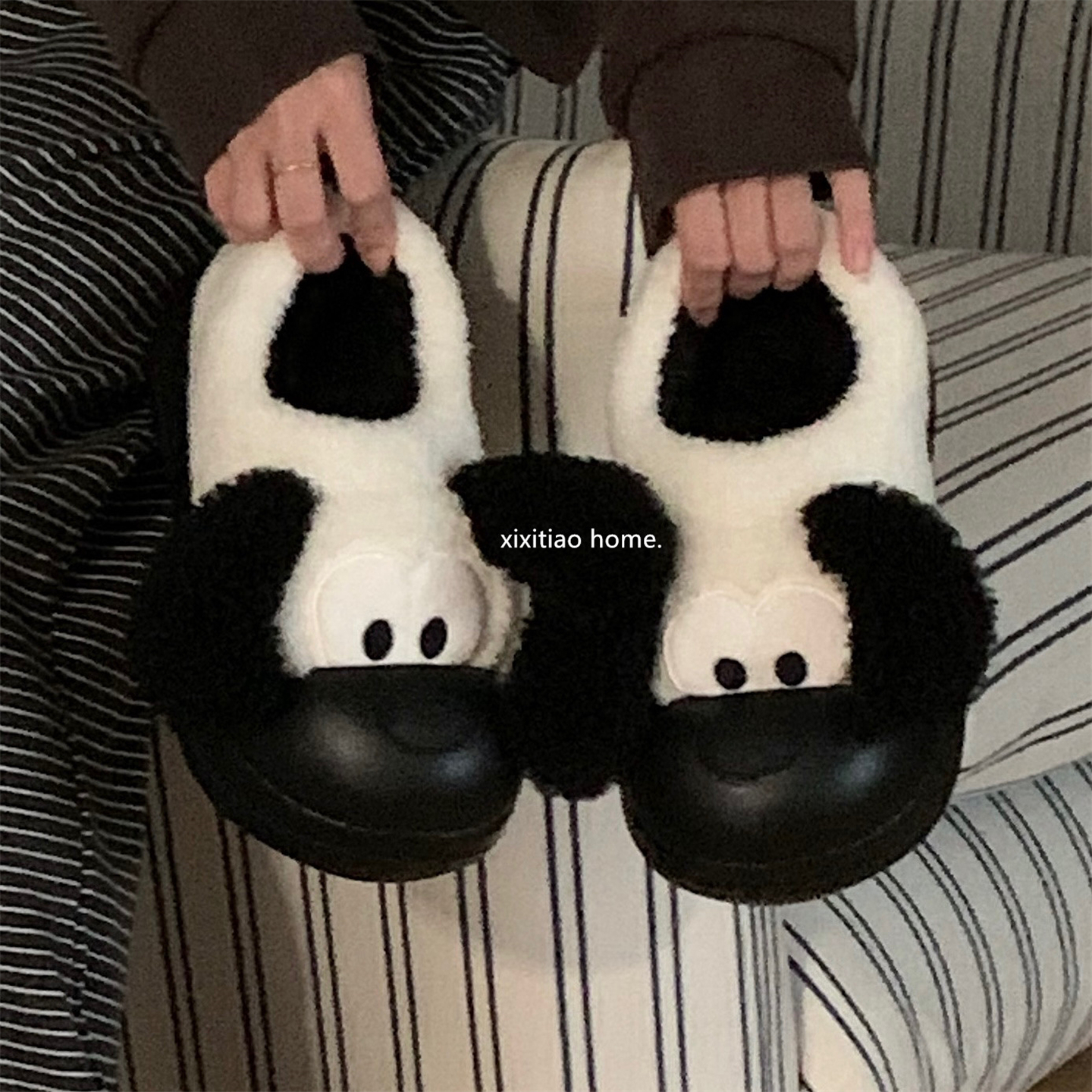细细条 趣味狗狗懒人棉拖鞋女外穿居家防滑保暖冬季厚底毛毛棉鞋,广东 揭阳