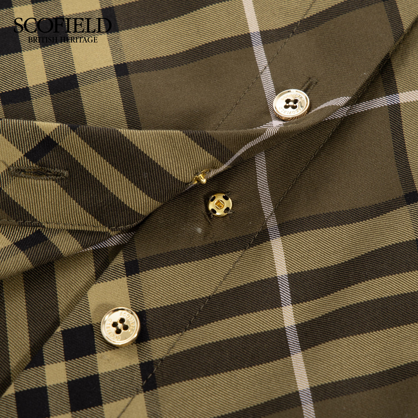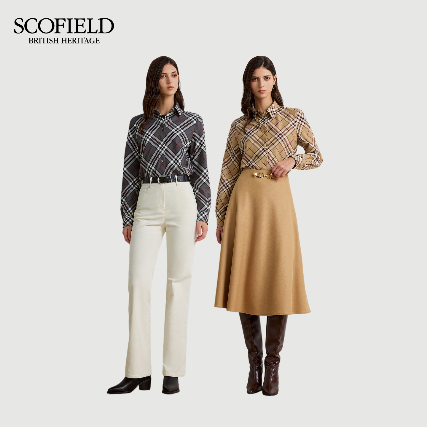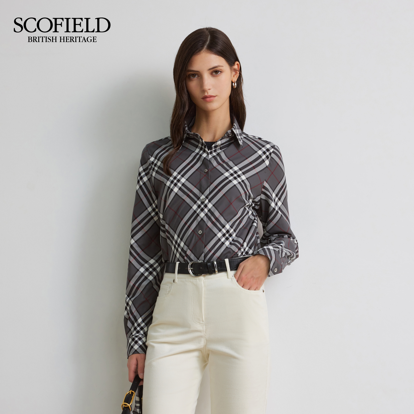 【棉100%】Scofield女装英伦文艺风撞色菱格衬衫2025秋冬新品,上海