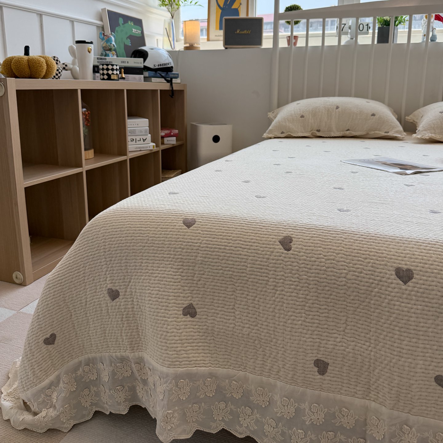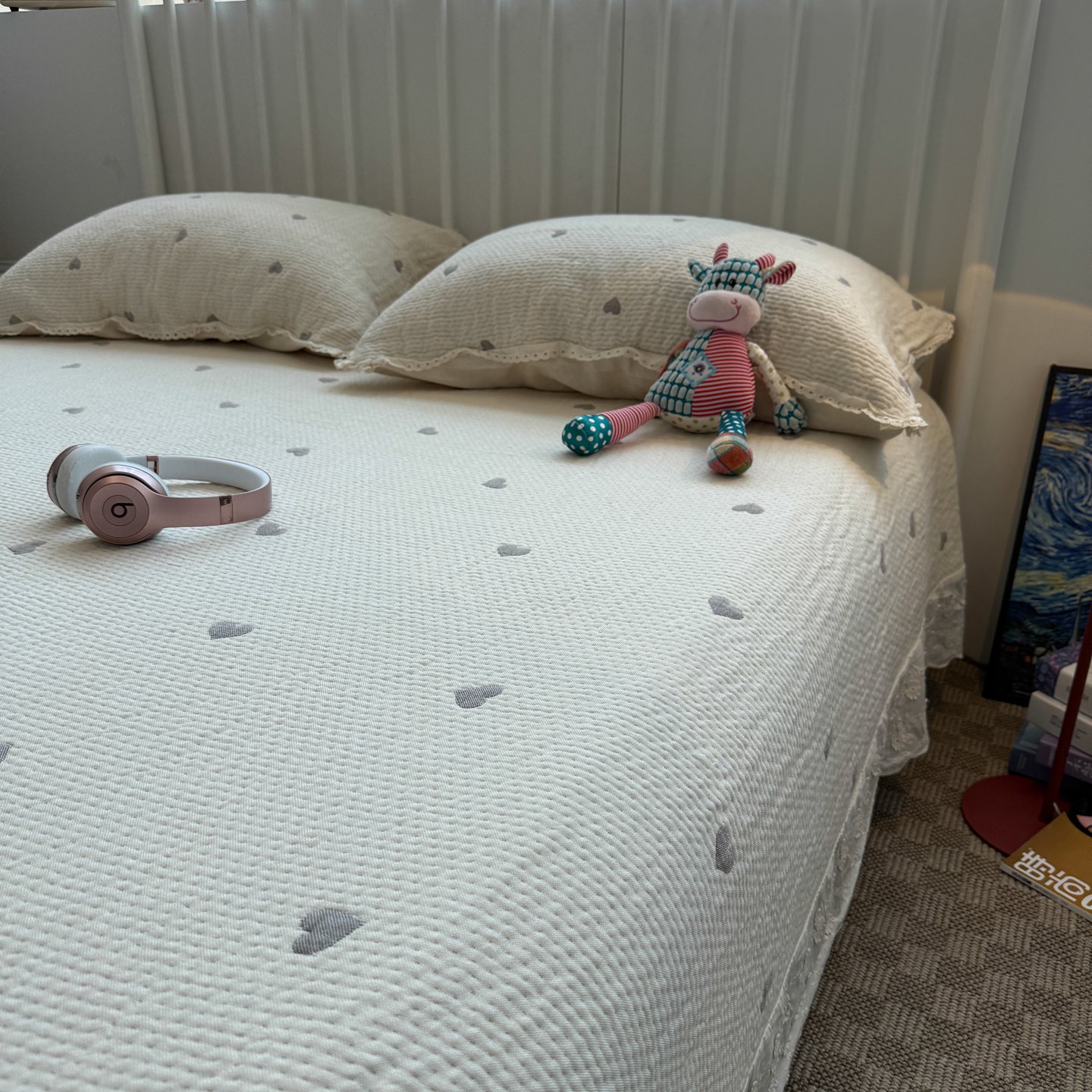 纯棉少女心色织提花加厚床盖三件套全棉榻榻米床单四季通用1.8米