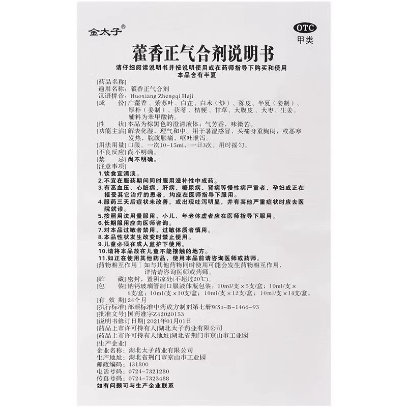 低至4.7元/盒包邮】Goldprince/金太子 藿香正气合剂 10ml*5支/盒