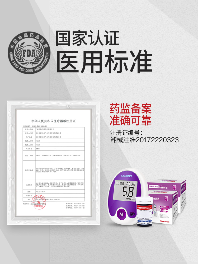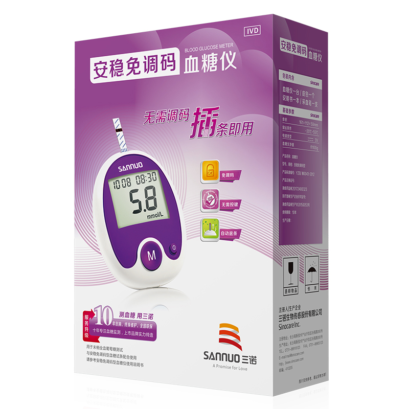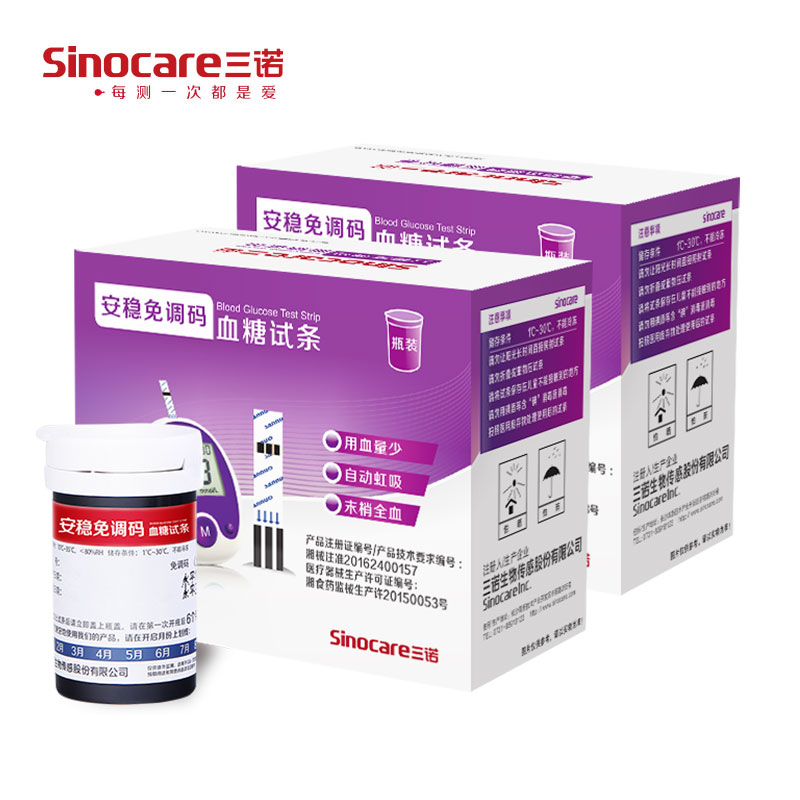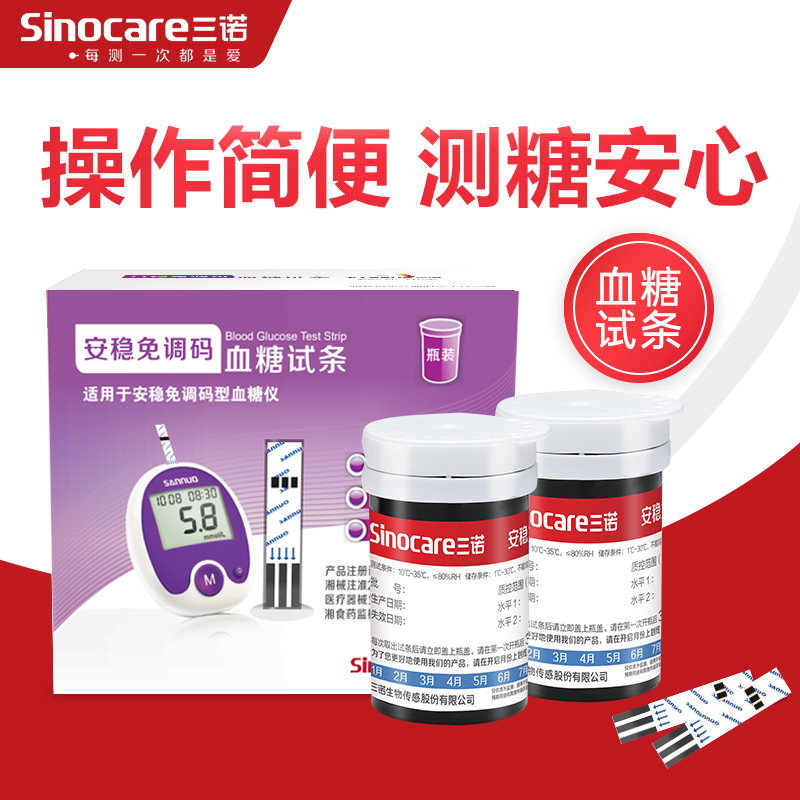 三诺安稳免调码血糖试纸测血糖的仪器血糖测试仪家用精准血糖试条,广东 深圳