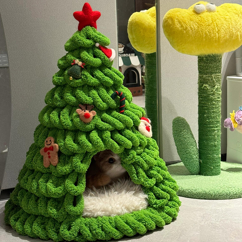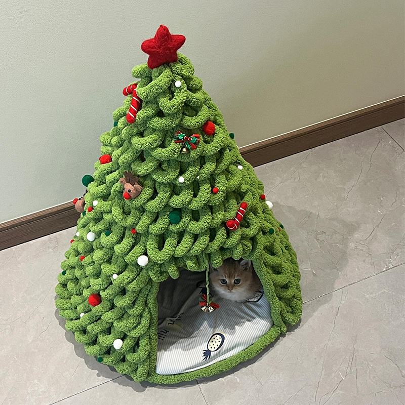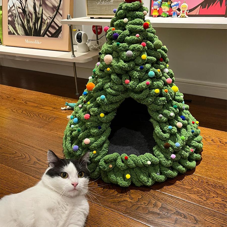 圣诞树编织猫窝手工diy材料包冬季天保暖封闭式安全感小幼猫床,浙江 金华