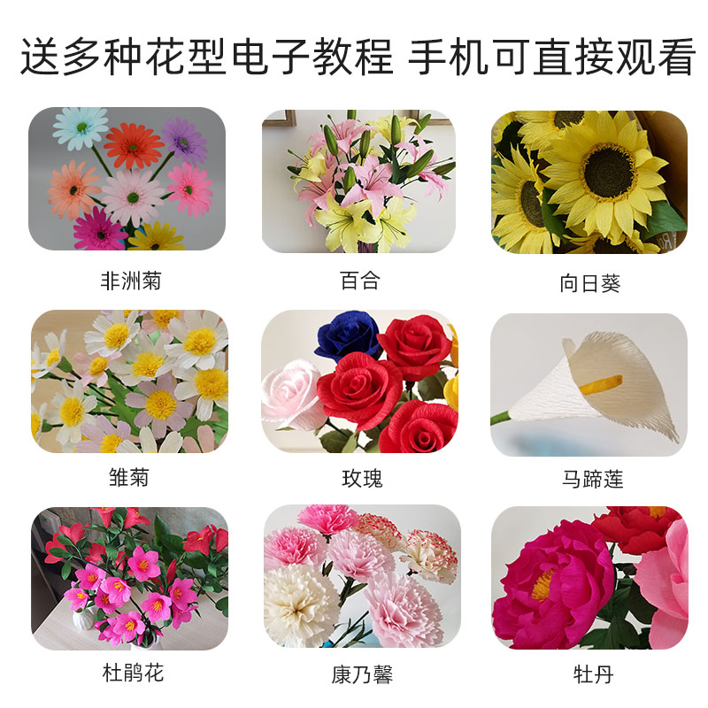 彩色皱纹纸褶皱纸手揉玫瑰花康乃馨制作幼儿园手工材料加厚卷边纸
