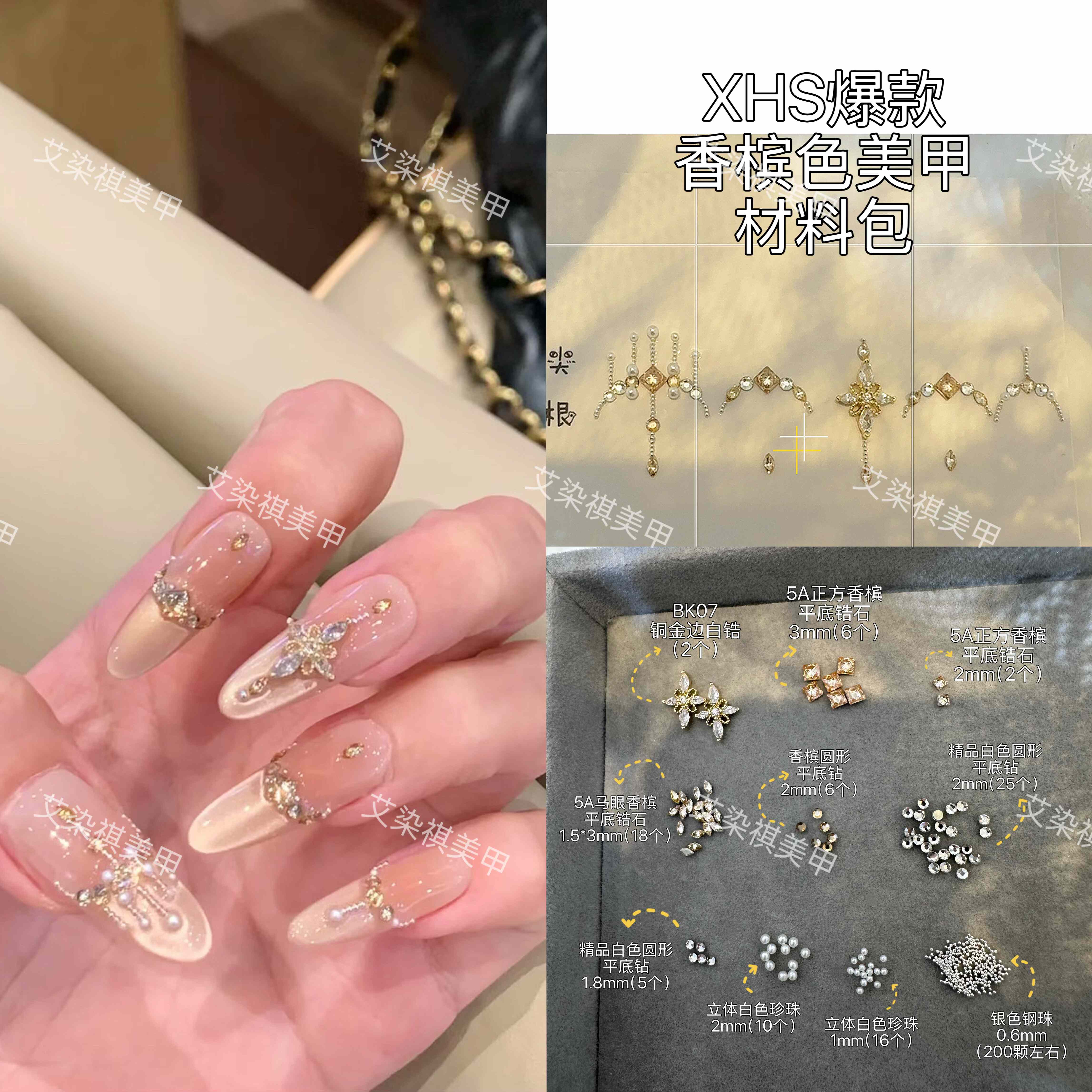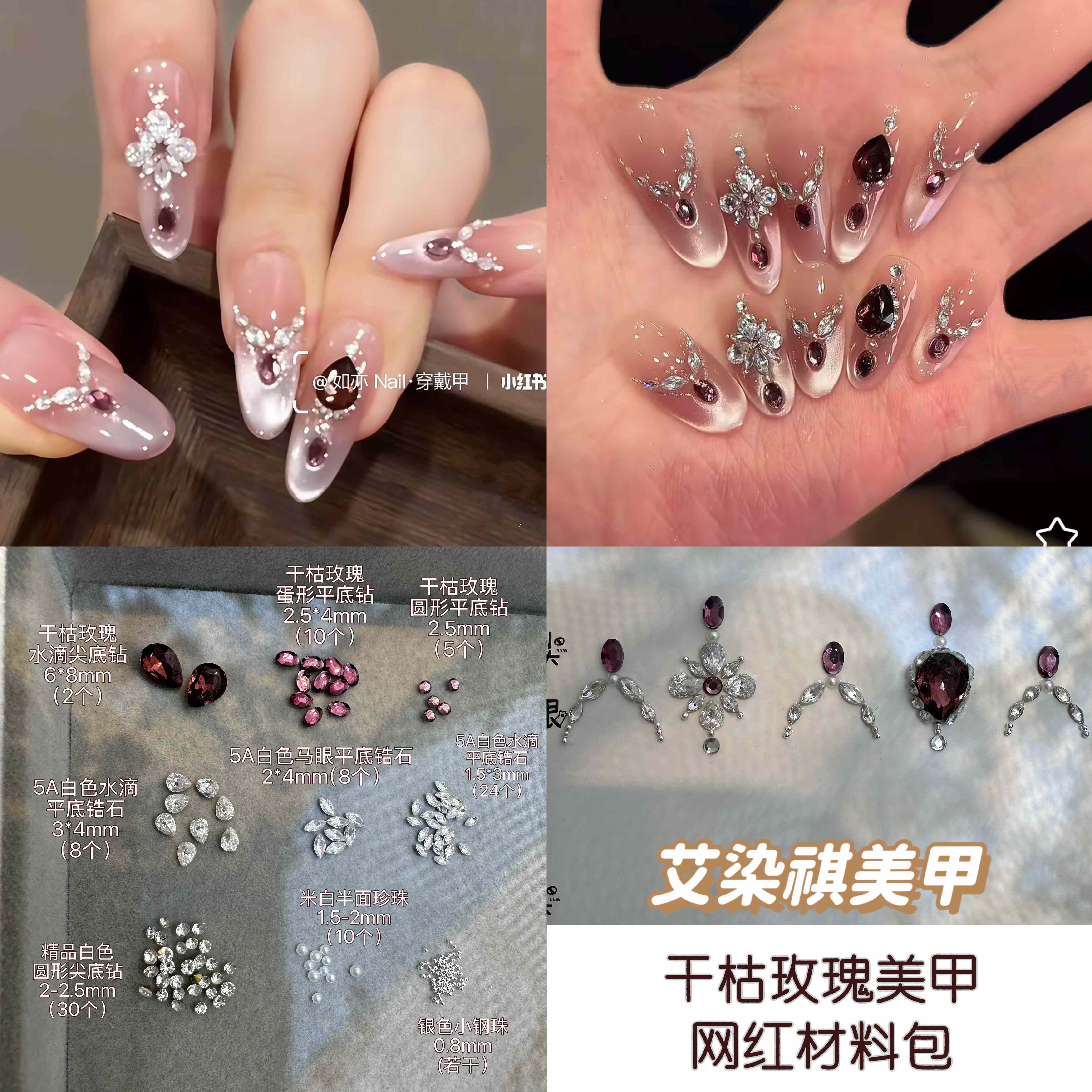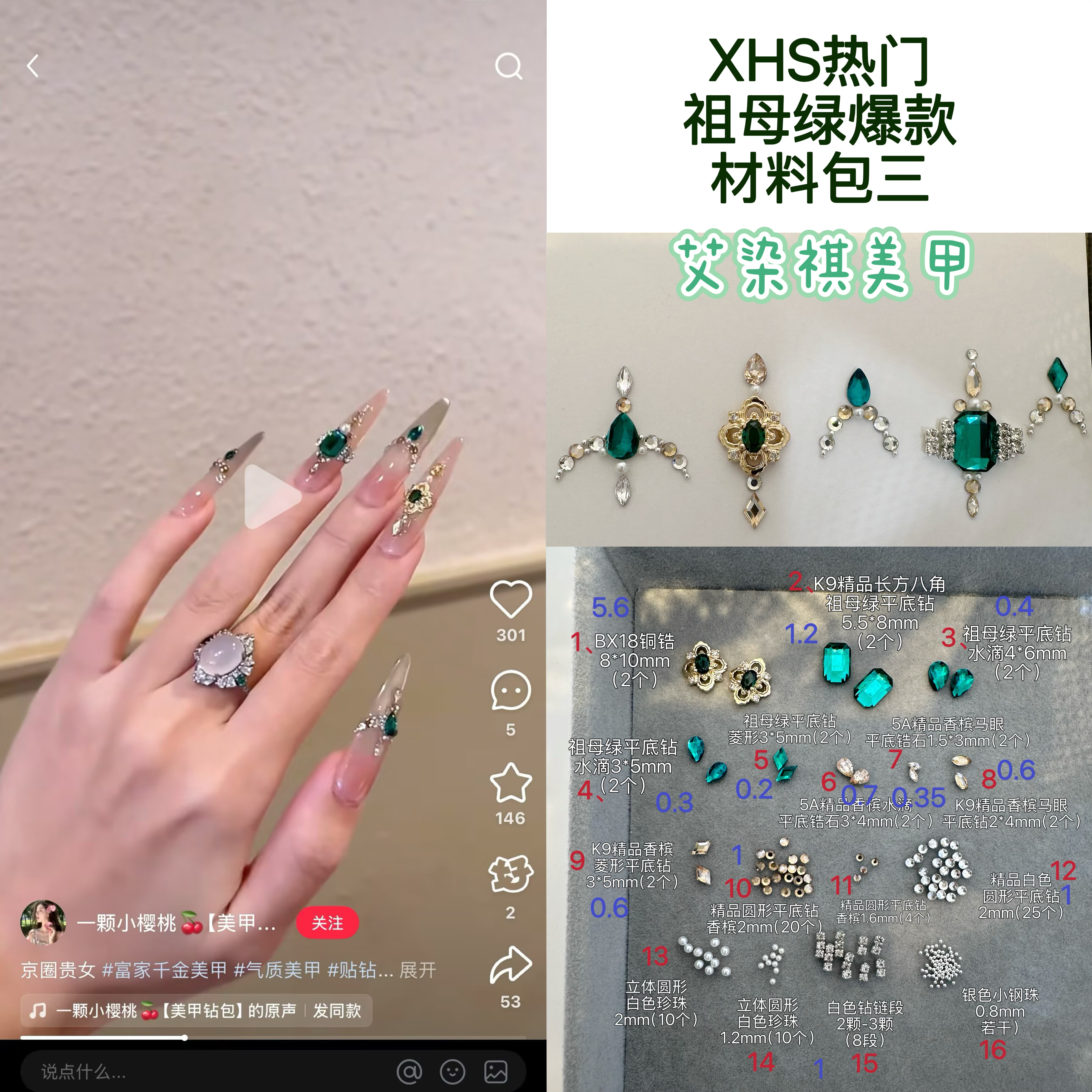 XHS爆款布契拉提祖母绿色锆石美甲菱形平底钻猫眼穿戴甲材料包,福建 泉州