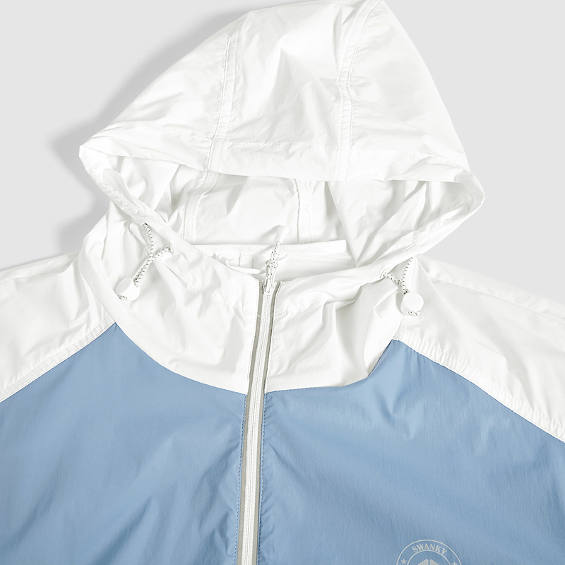 海一家连帽轻薄透气皮肤衣2025夏季新款蓝白撞色时尚男士夹克,江苏 无锡