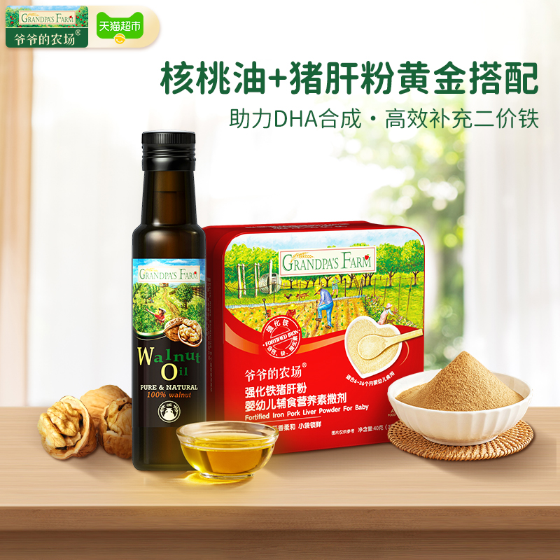 爷爷的农场宝宝DHA营养品核桃油+婴幼儿高铁辅食猪肝粉2件套,上海