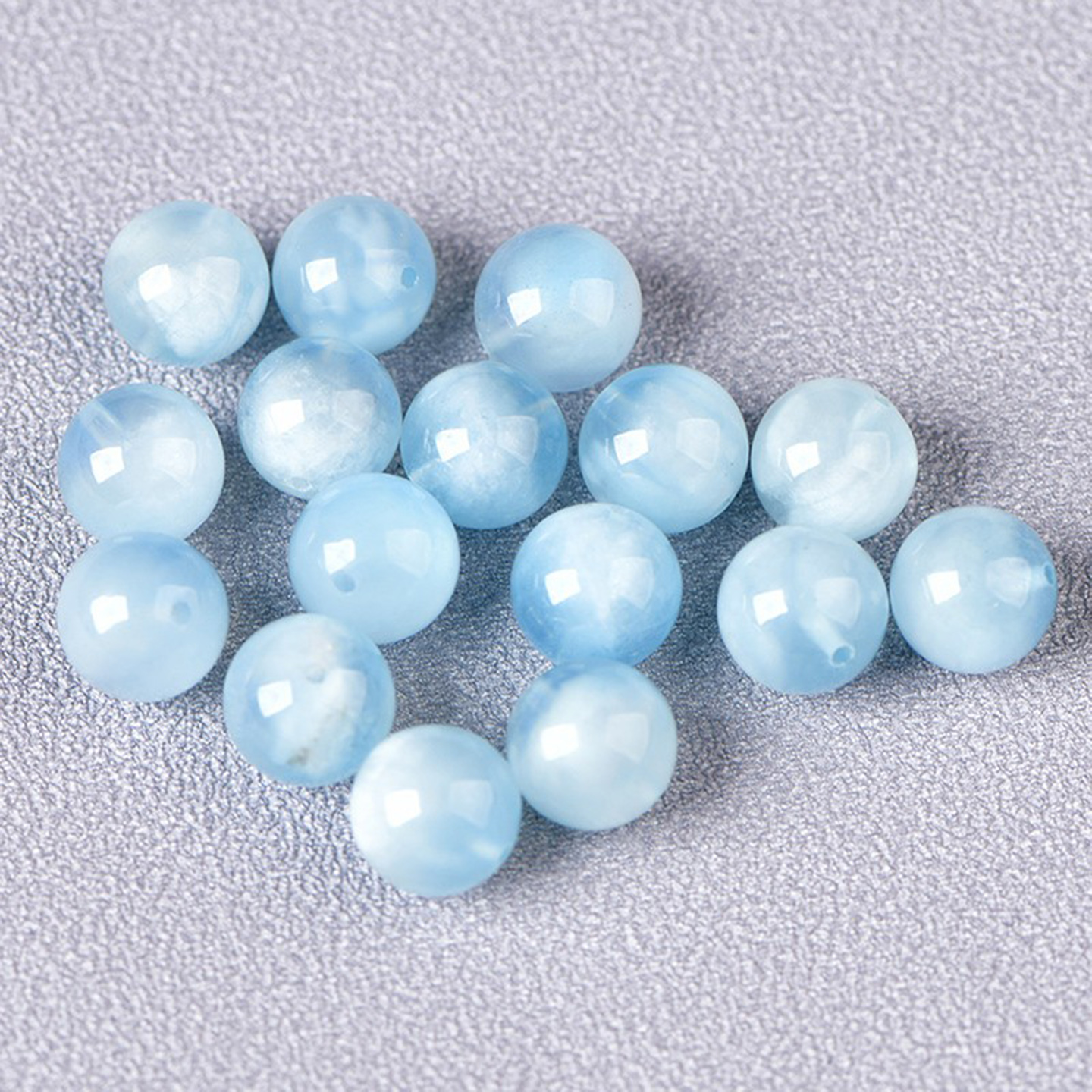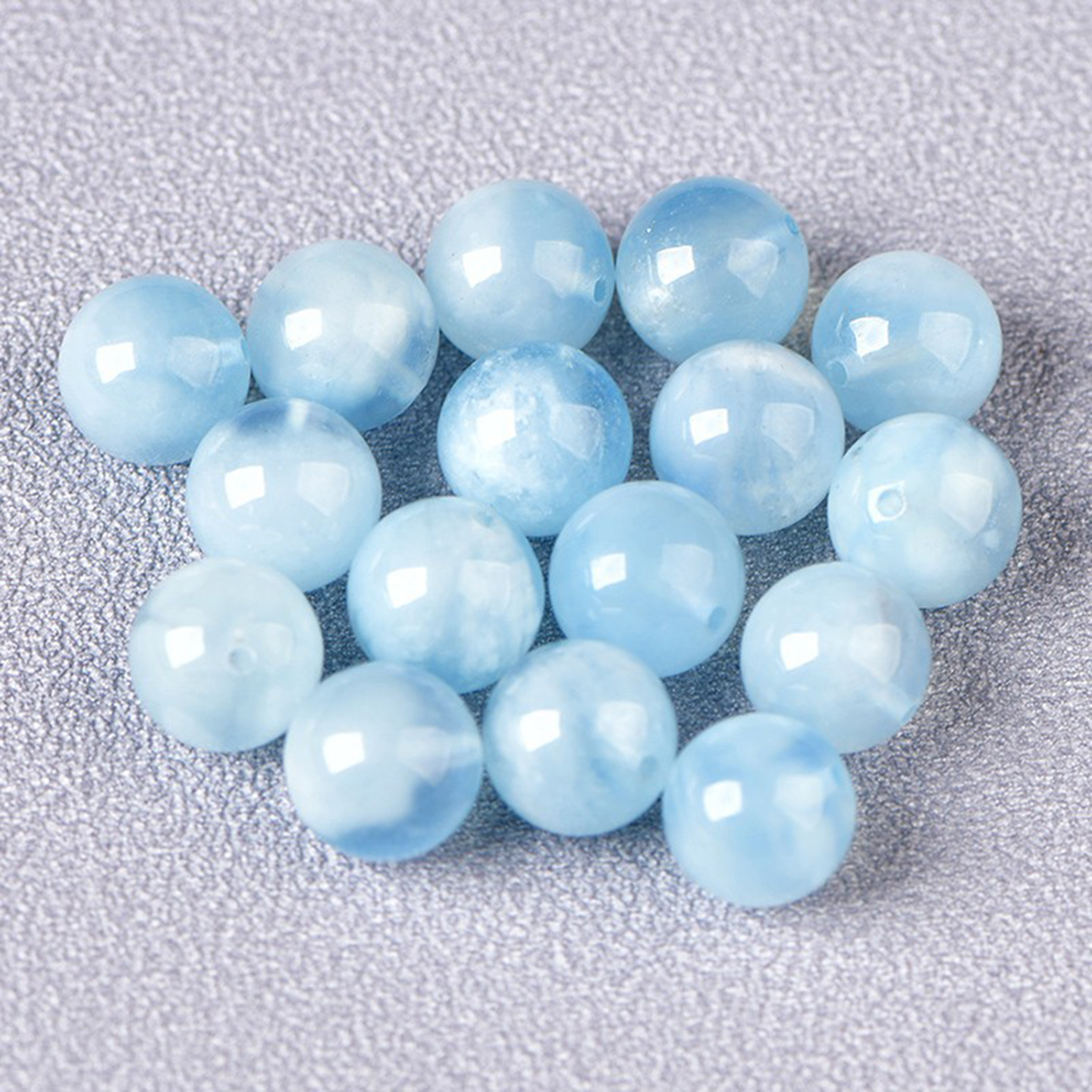 天然海蓝宝蓝天白云圆珠散珠子diy水晶手链饰品配件材料项链挂件,江苏 连云港
