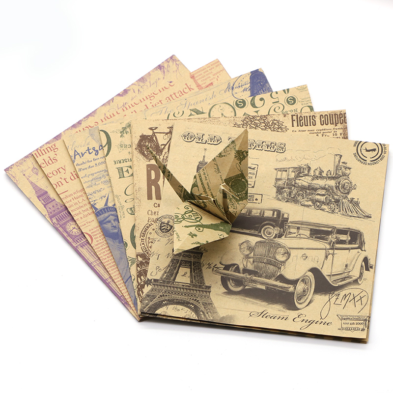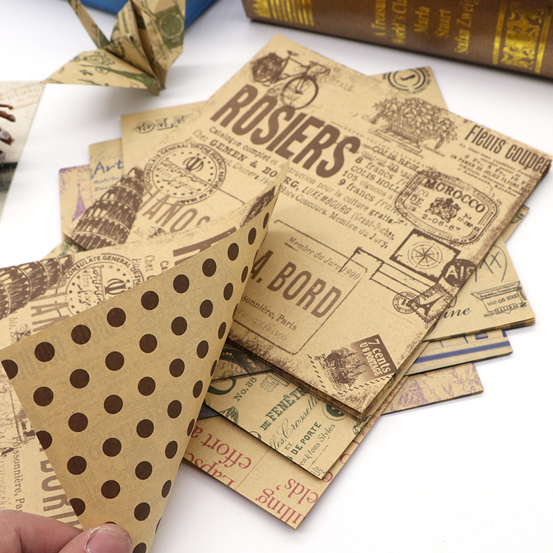 15厘米正方形复古怀旧欧美双面印花手工折纸手账花纹牛皮纸材料
