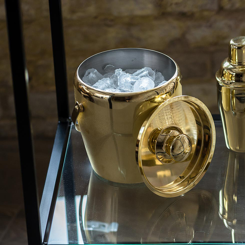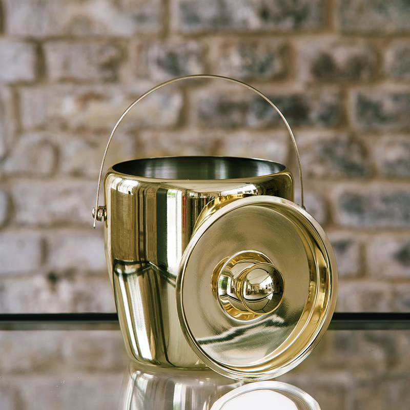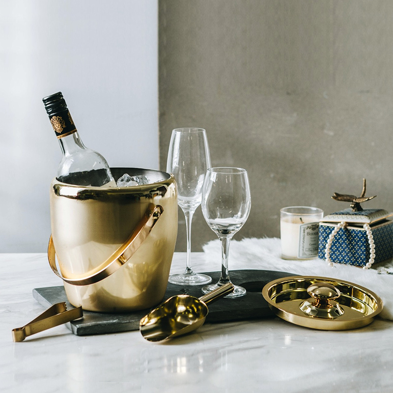 丹麦Bloomingville金色不锈钢冰桶冰块存放桶带盖手提啤酒冰镇桶