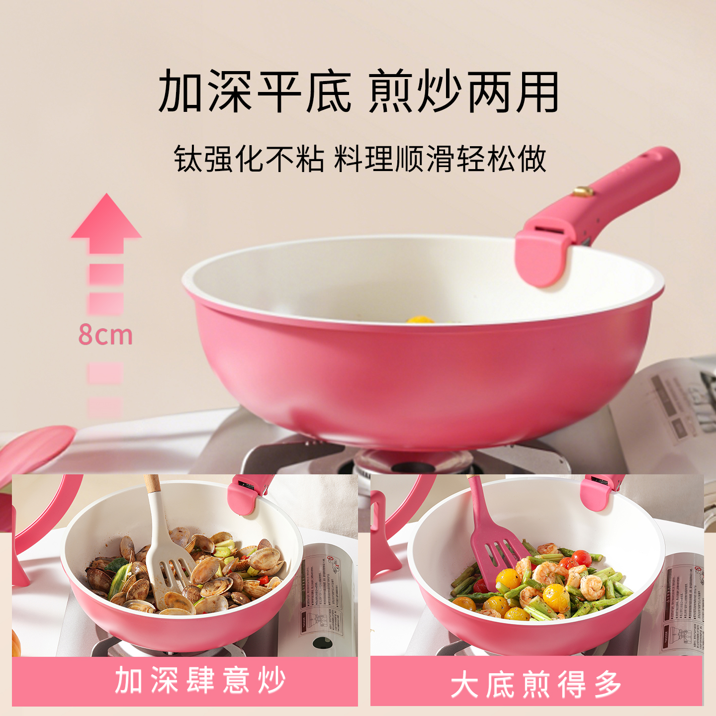 卡罗特钛陶瓷不粘锅家用炒菜锅无涂层平底锅燃气灶电磁炉专用,浙江 金华
