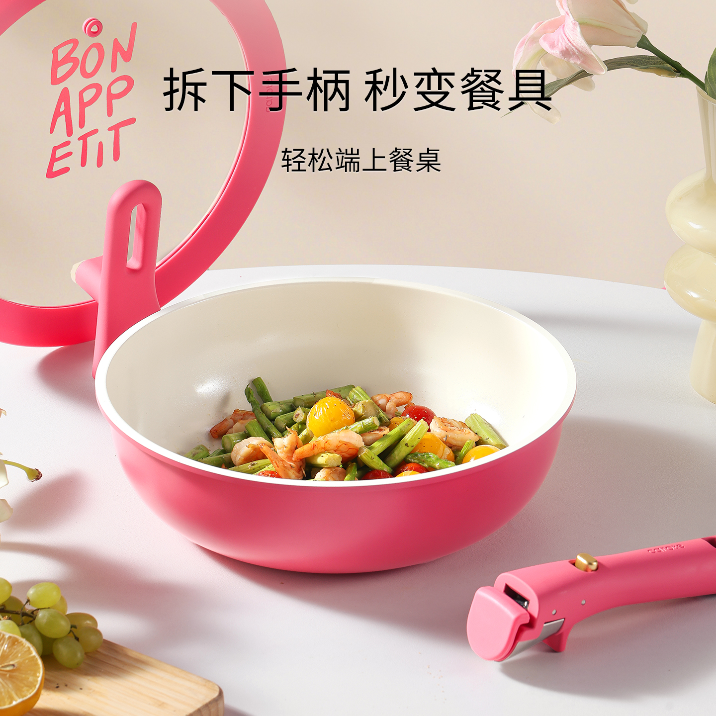 卡罗特钛陶瓷不粘锅家用炒菜锅无涂层平底锅燃气灶电磁炉专用