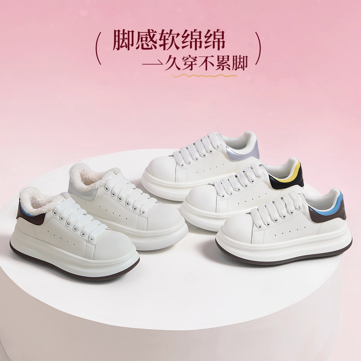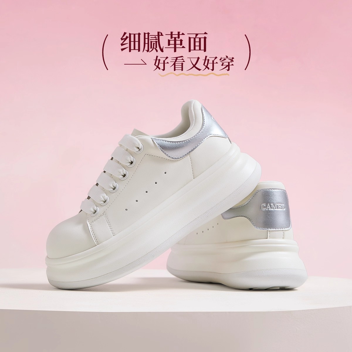 直播骆驼女鞋2025新款时尚潮流情侣款厚底轻盈小白鞋 加绒/单里
