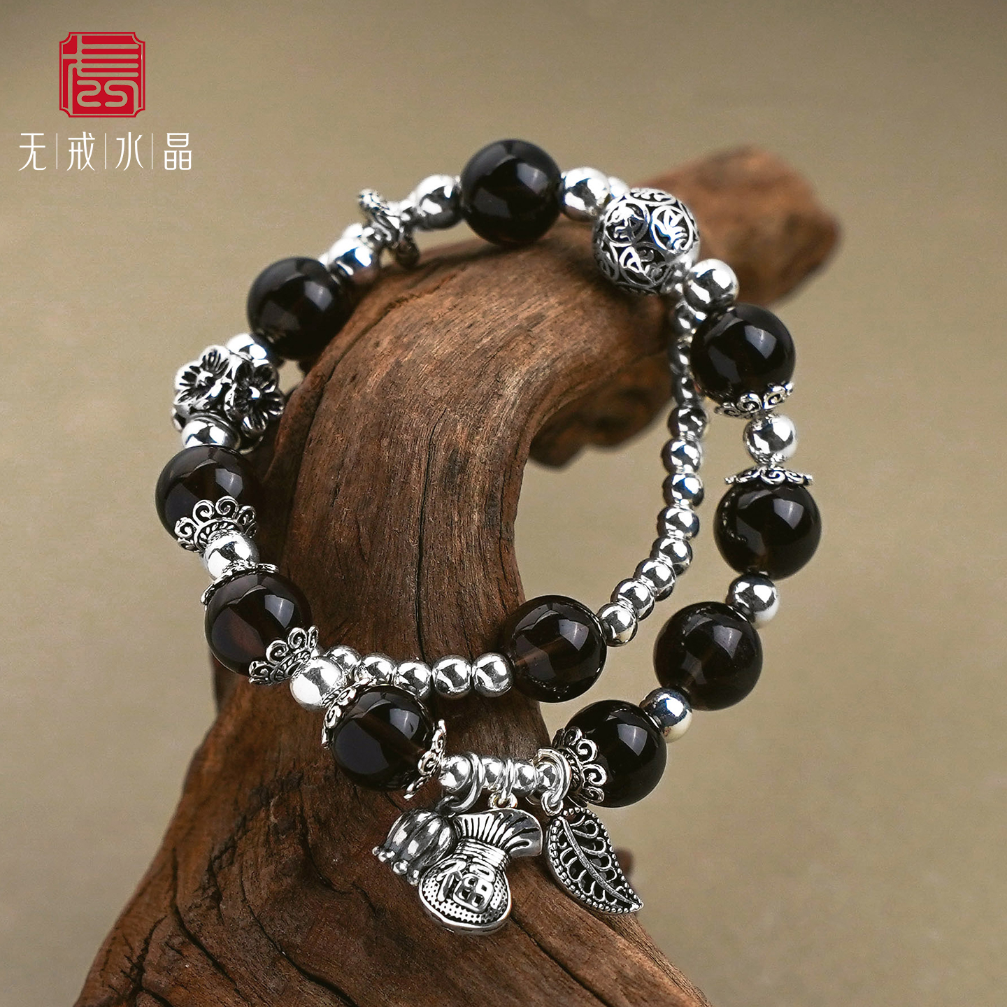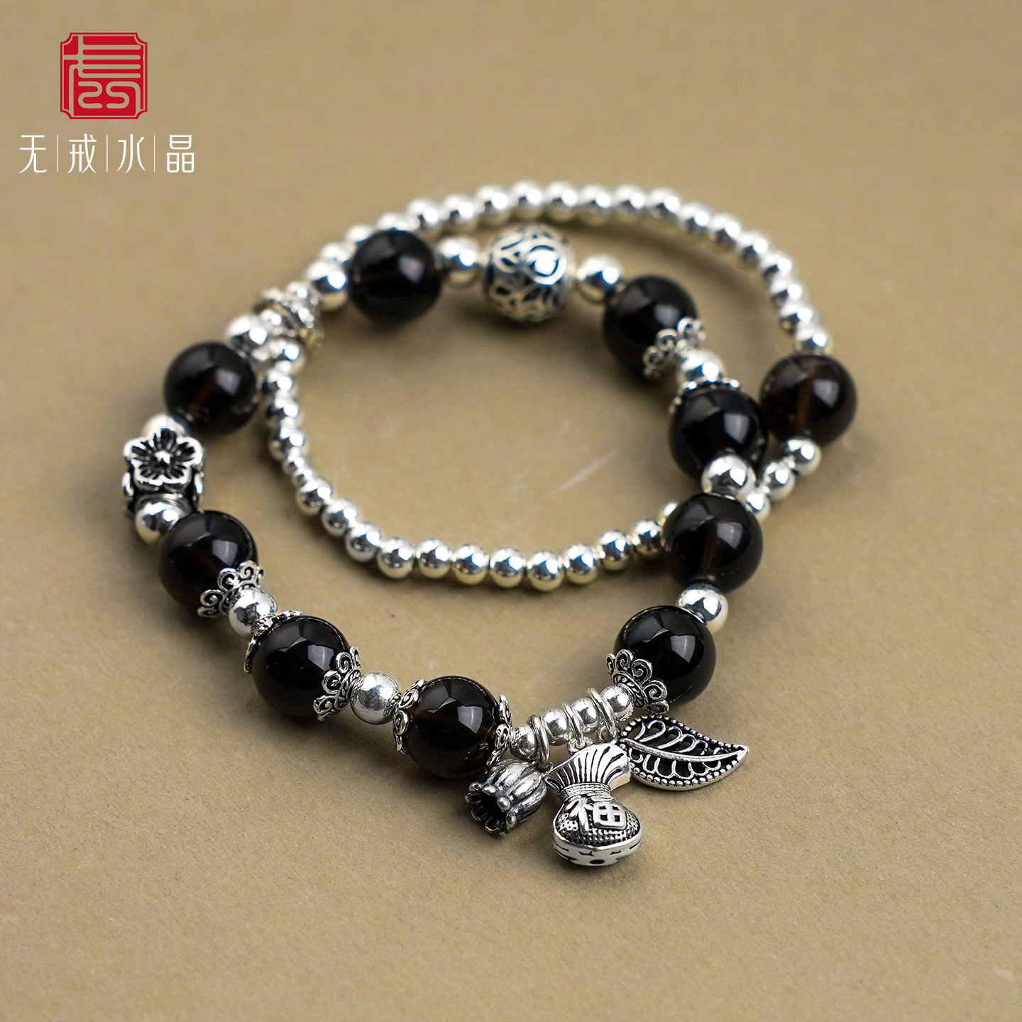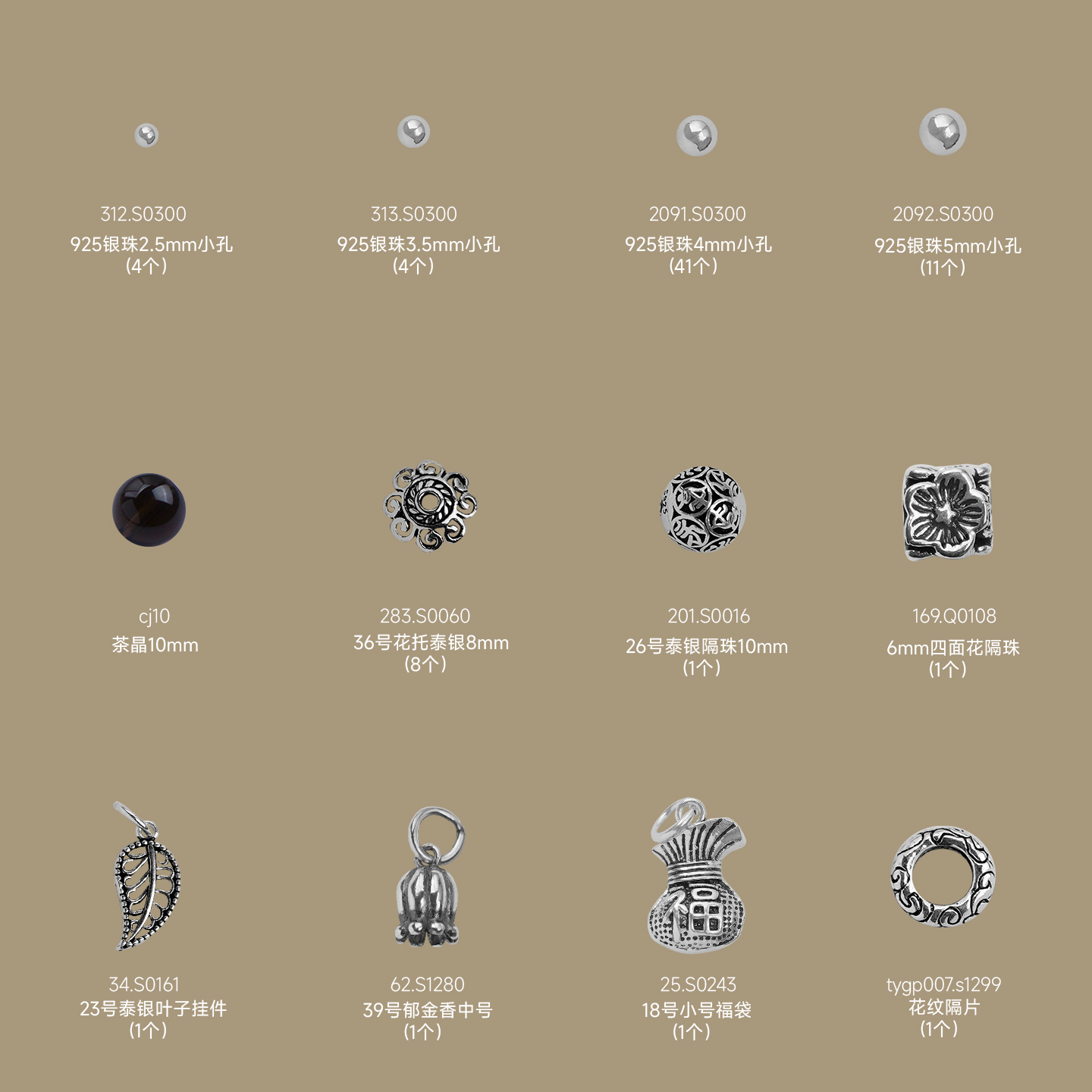 【材料包】S925纯银福袋郁金香茶晶天然水晶银珠手链DIY银饰配件,陕西 西安
