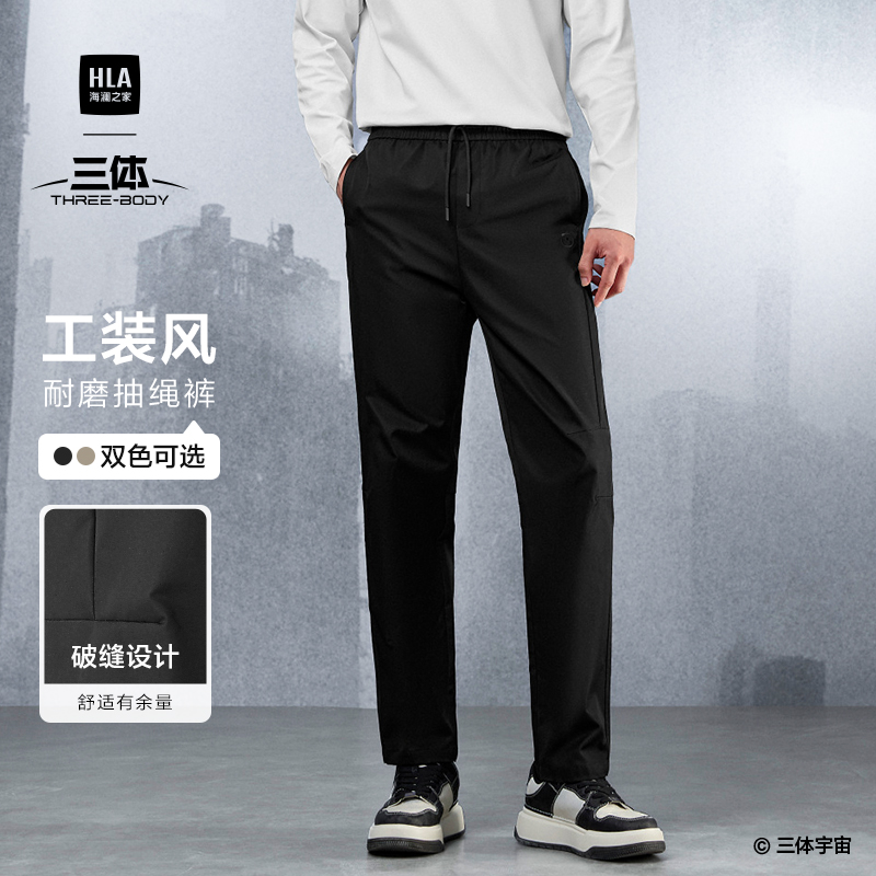 HLA/海澜之家破缝装饰休闲裤2025秋新款三体联名系列大码裤子男
