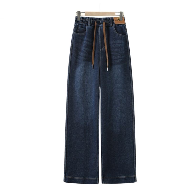 2025牛仔裤弹力新款松紧高腰爆款宽松直筒显瘦筒裤百搭裤子小个子