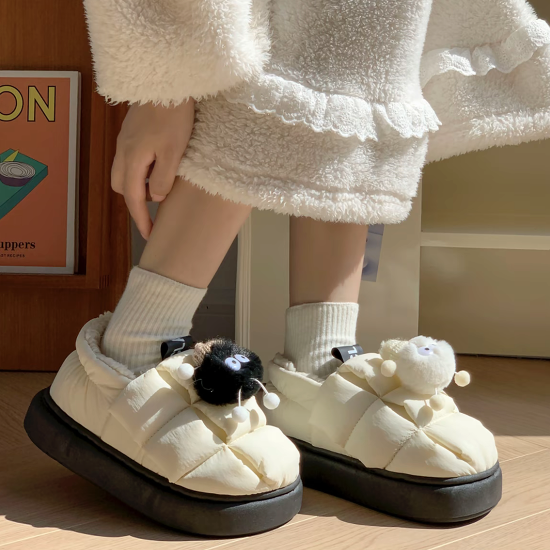 秋冬季棉拖鞋女款踩屎感加绒居家棉鞋保暖加厚月子包跟软底羽绒布