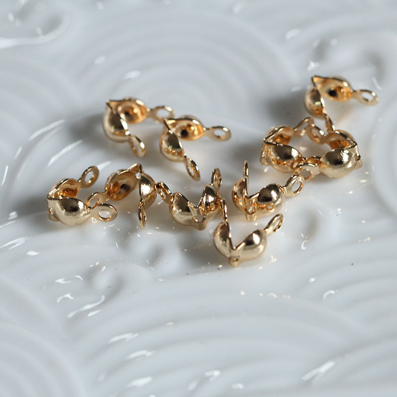 花影梦步摇发簪DIY配件头饰品材料*4mm黄铜包珠扣贝贝扣包扣夹扣