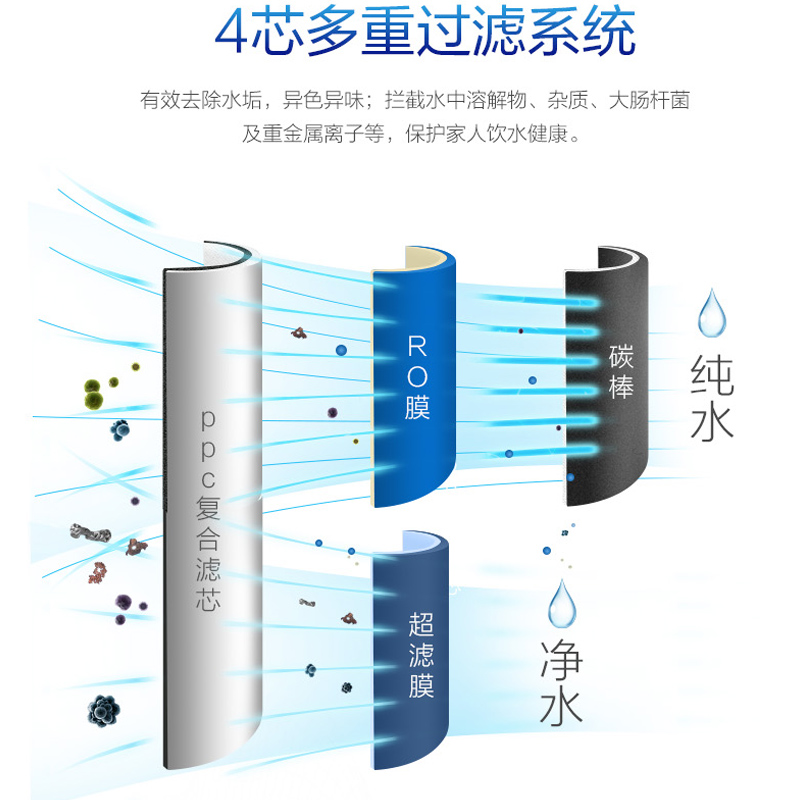 沁园ro反渗透家用厨下净饮机直饮厨房饮水机RO膜纯水机过滤器3800