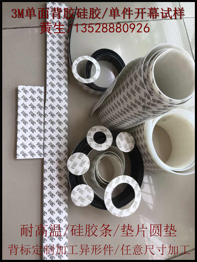 单面背胶橡胶板3M自粘硅胶条密封垫片自粘密封条胶条高温硅胶垫板,广东 深圳
