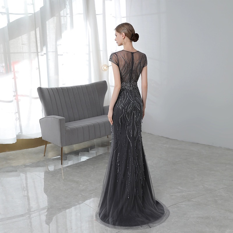 2024款高端重工鱼尾晚礼服女宴会气质名媛主持人礼服裙晚装敬酒服,浙江 杭州