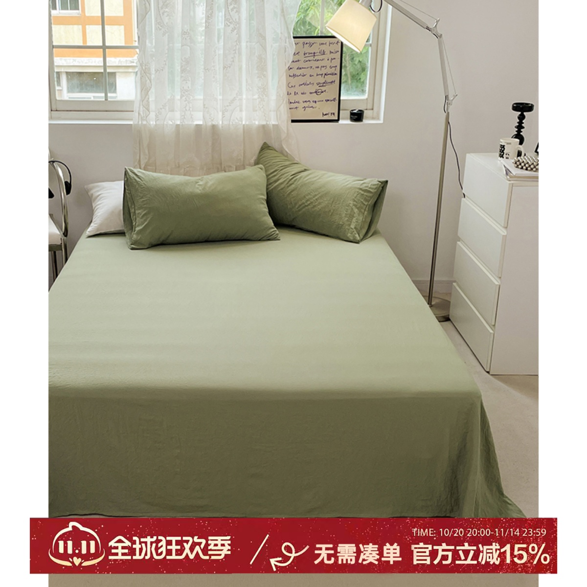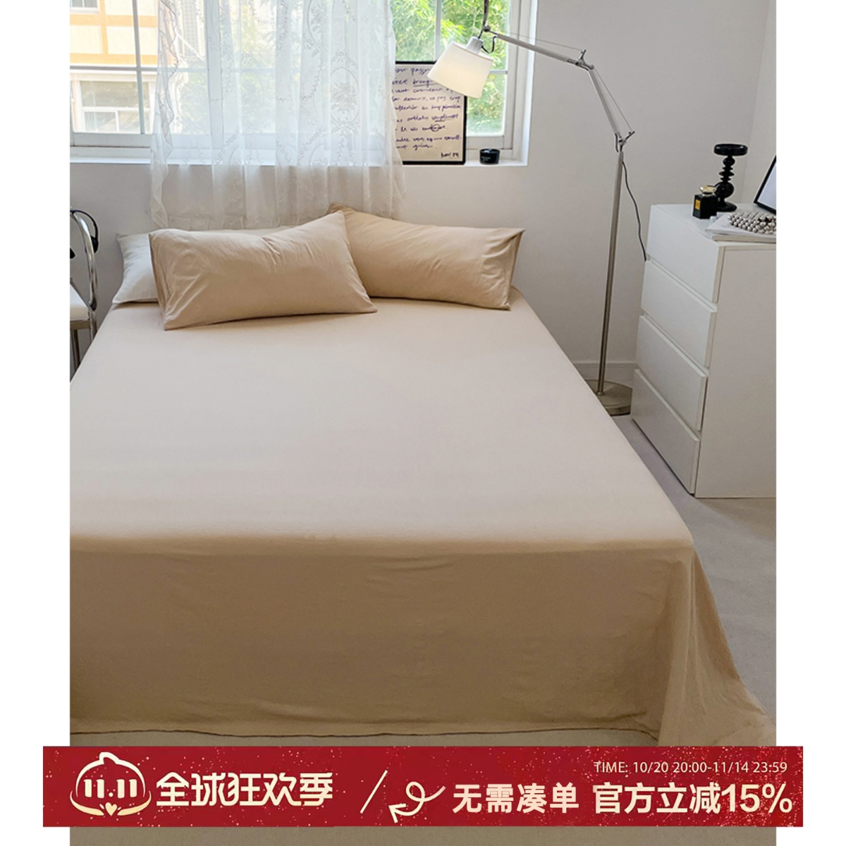 枕边故事简约纯色床单单件学生宿舍单双人水洗棉床笠保护套床垫套,江苏 南通