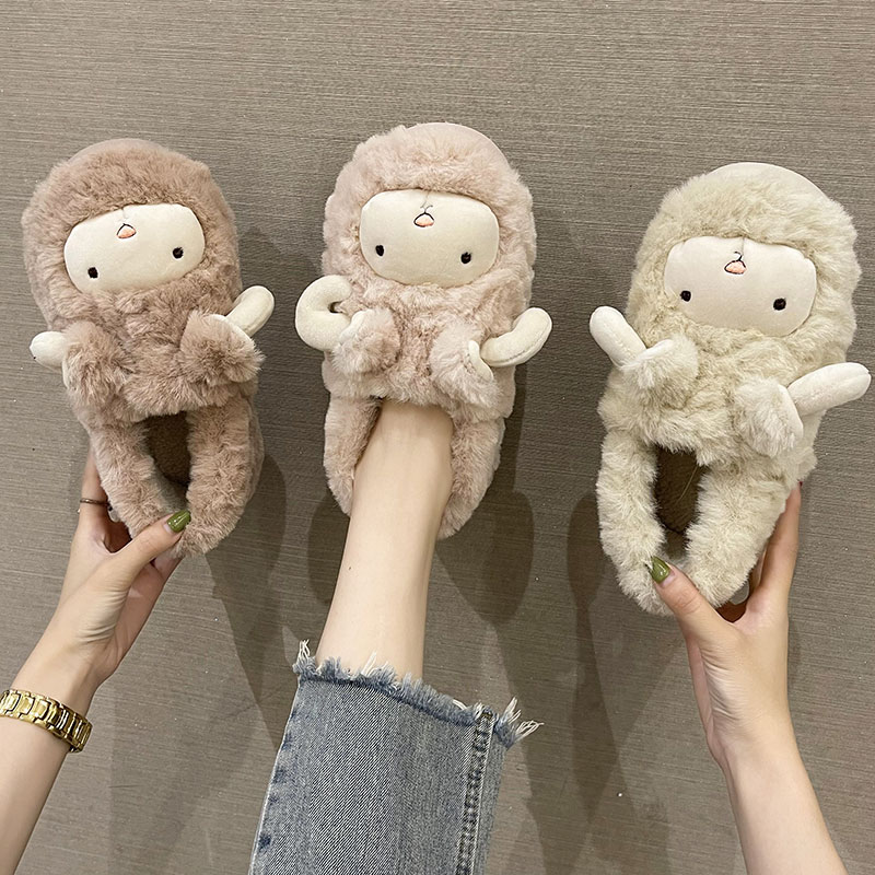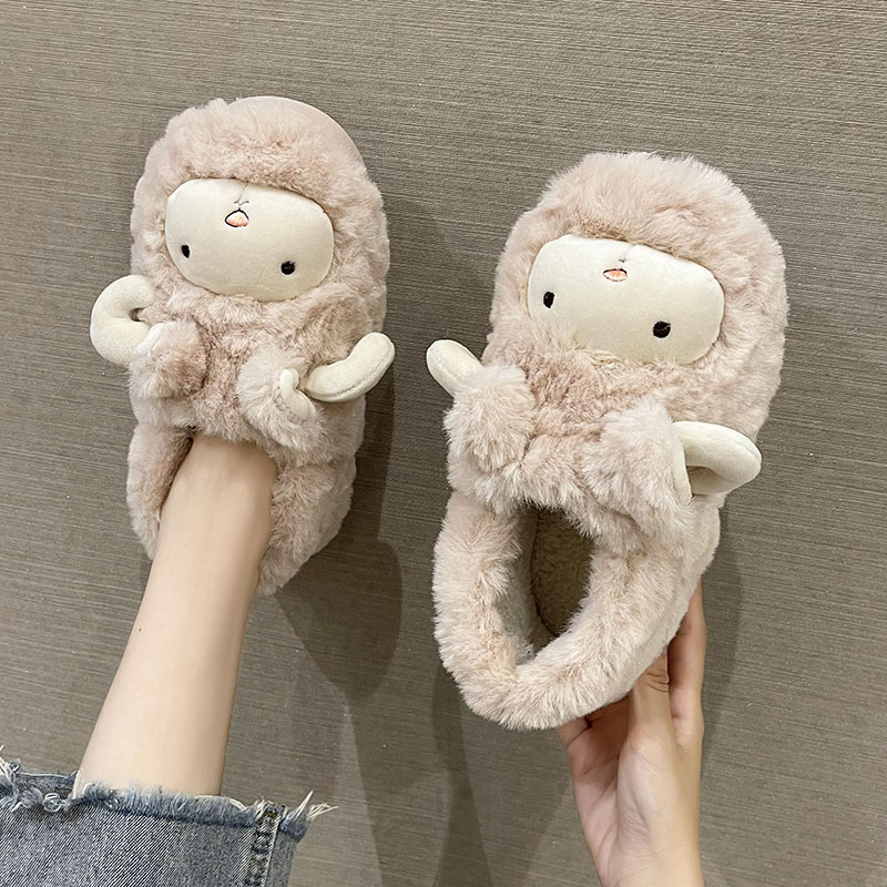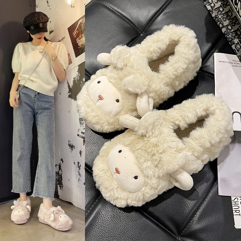 棉拖鞋女包跟冬季可爱卡通小羊居家室内厚底防滑毛绒保暖家用棉鞋,浙江 宁波