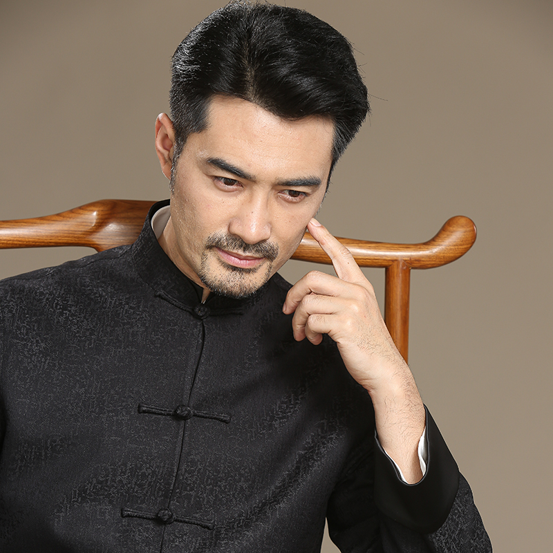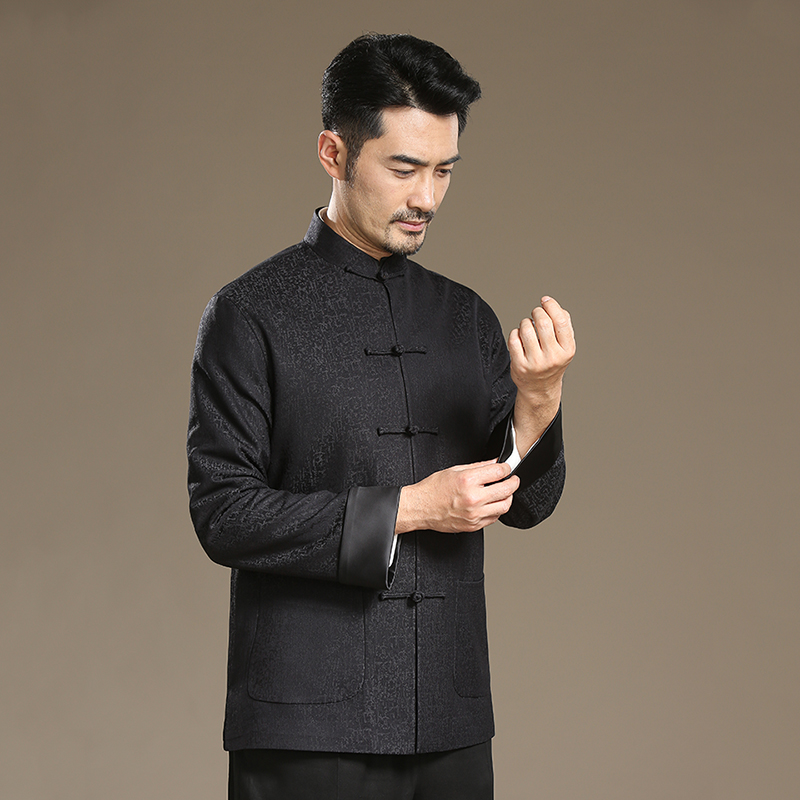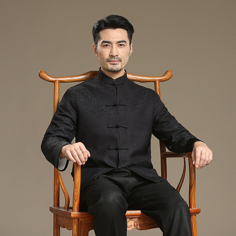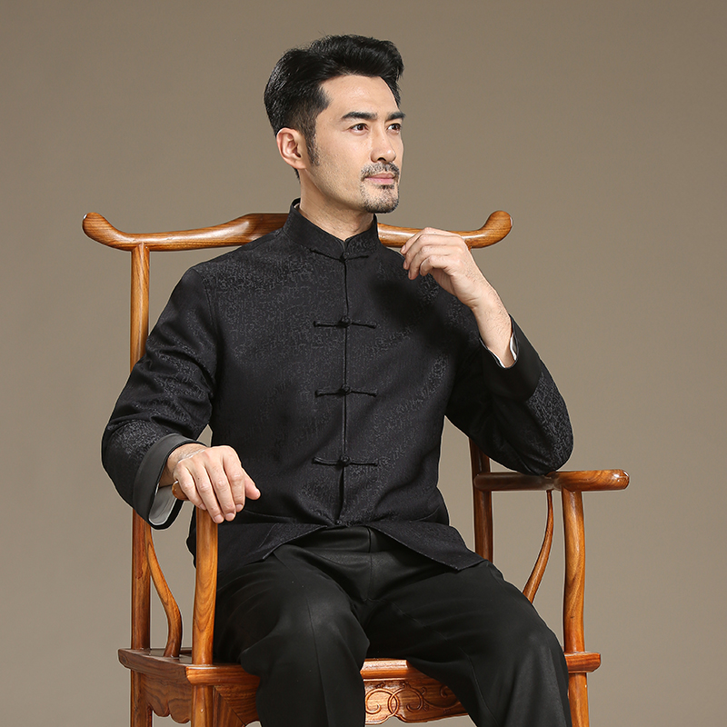 唐袭世家中式唐装男春秋季长袖中老年上衣中国风休闲立领盘扣外套,河北 廊坊