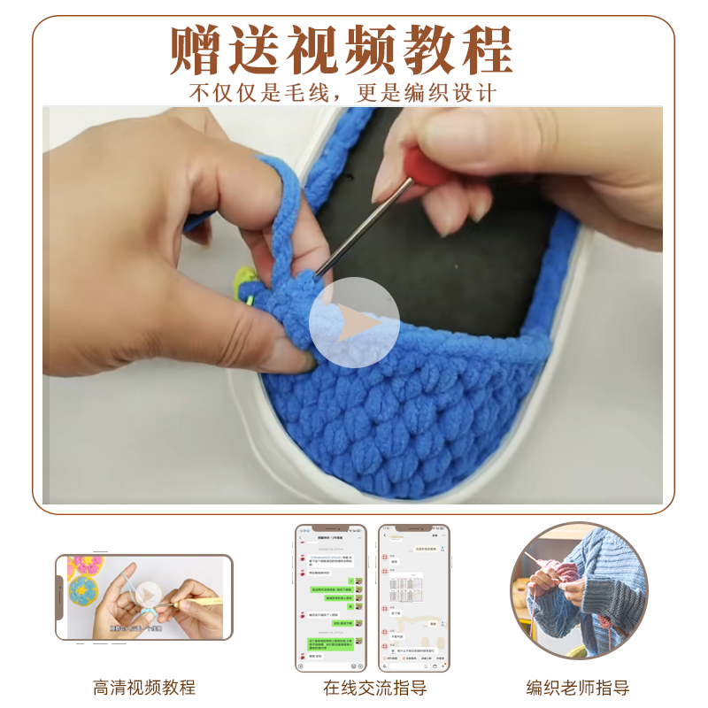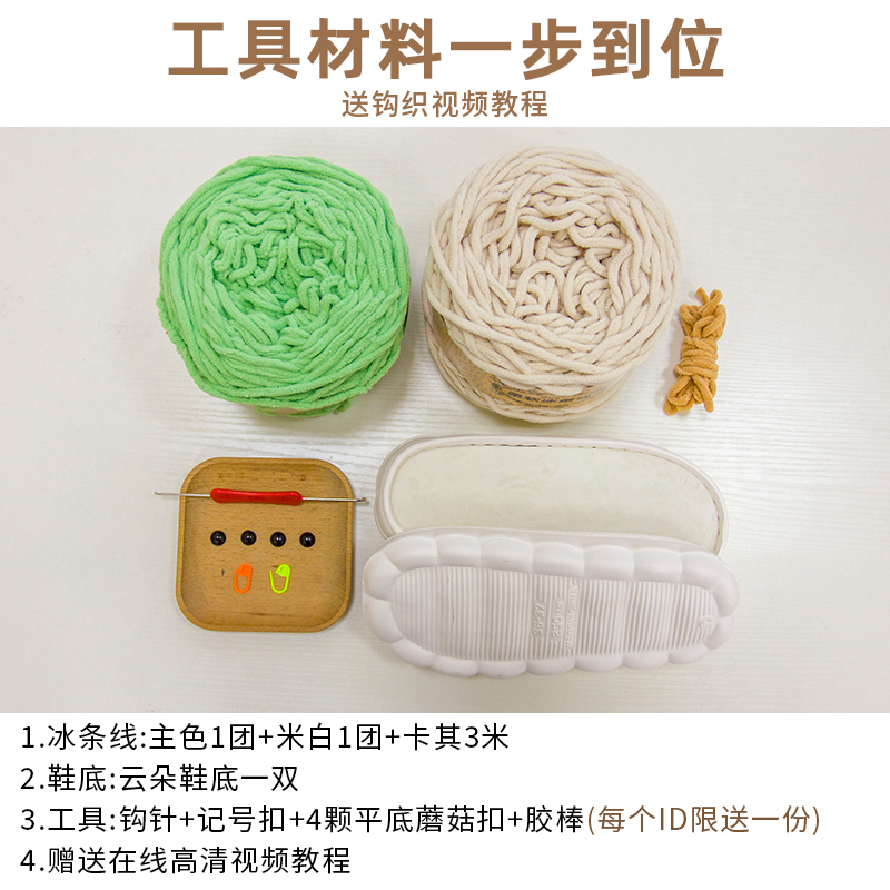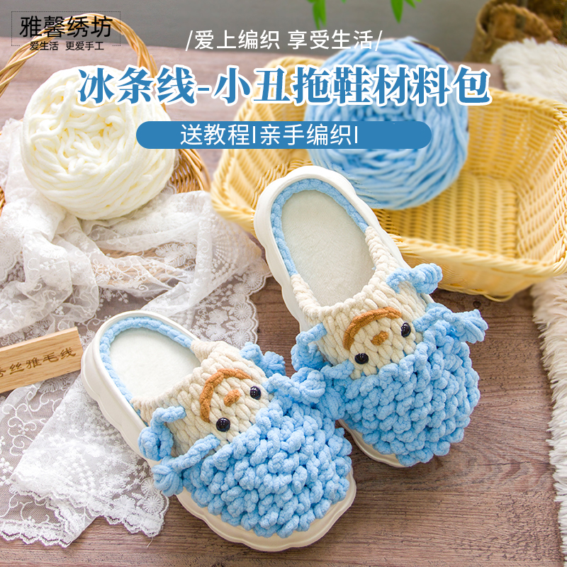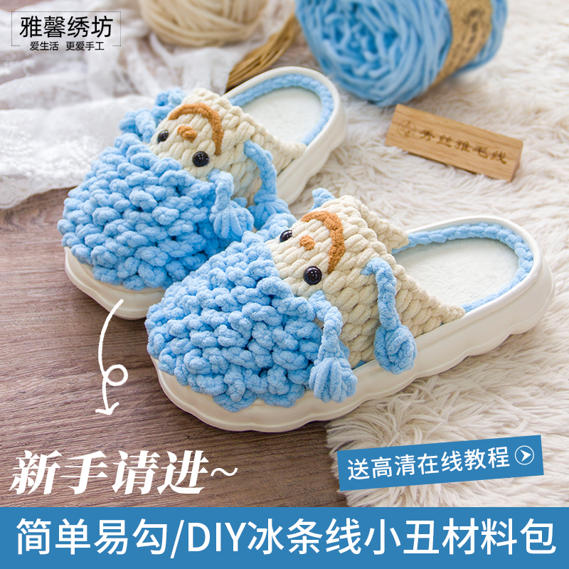 秀丝雅冰条线柔软加厚云朵软底鞋底小丑款手工diy钩织拖鞋材料包,安徽 安庆