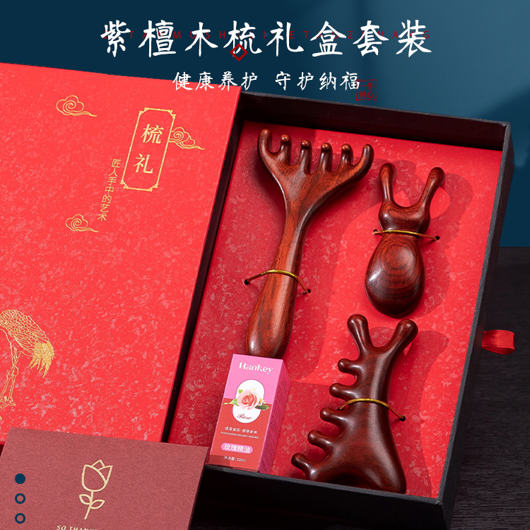 紫檀按摩梳生日礼物女送妈妈实用养生梳子套装送闺蜜朋友老师礼品,浙江 金华