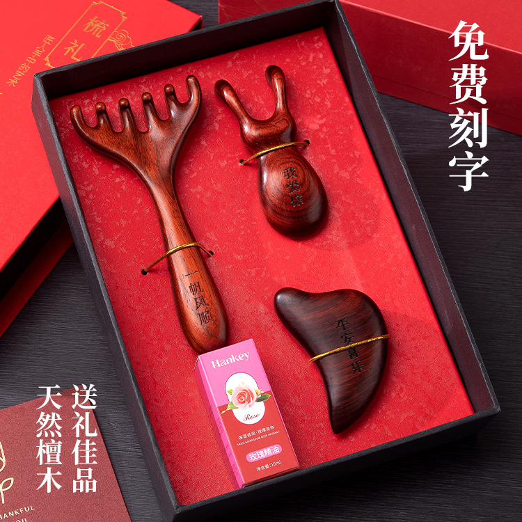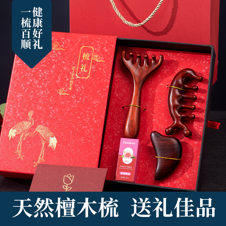 紫檀按摩梳生日礼物女送妈妈实用养生梳子套装送闺蜜朋友老师礼品