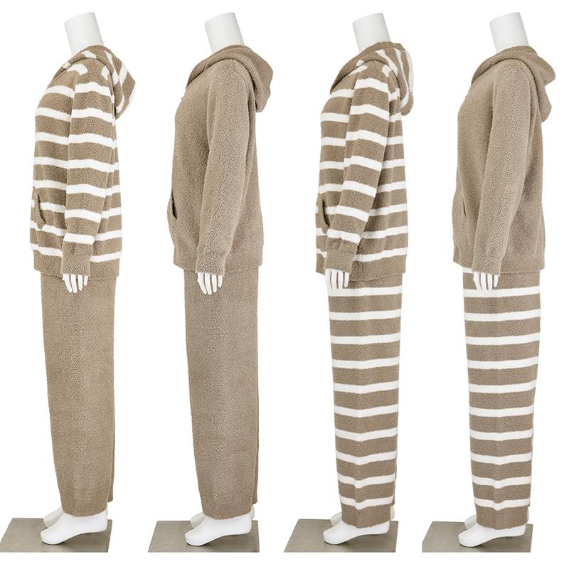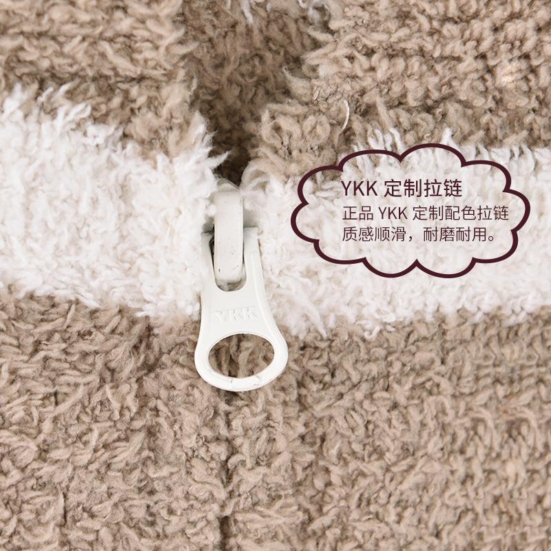日式纯棉睡衣女式摇粒绒发热毛毛衣品质家居连帽开衫男半边绒毛纱