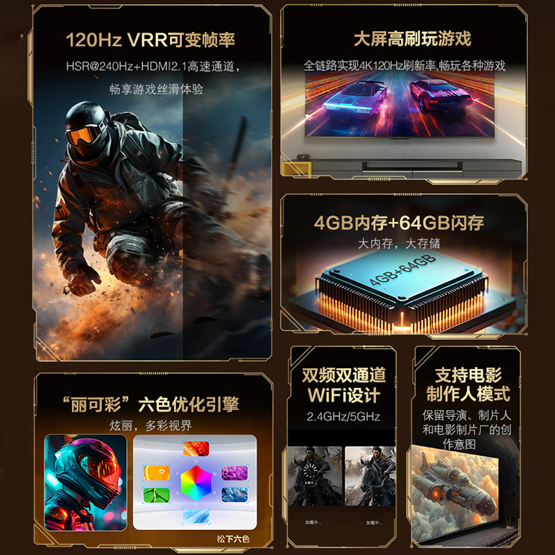 【松下电视旗舰店】松下电视65英寸PX680CP 全面屏120Hz游戏电视