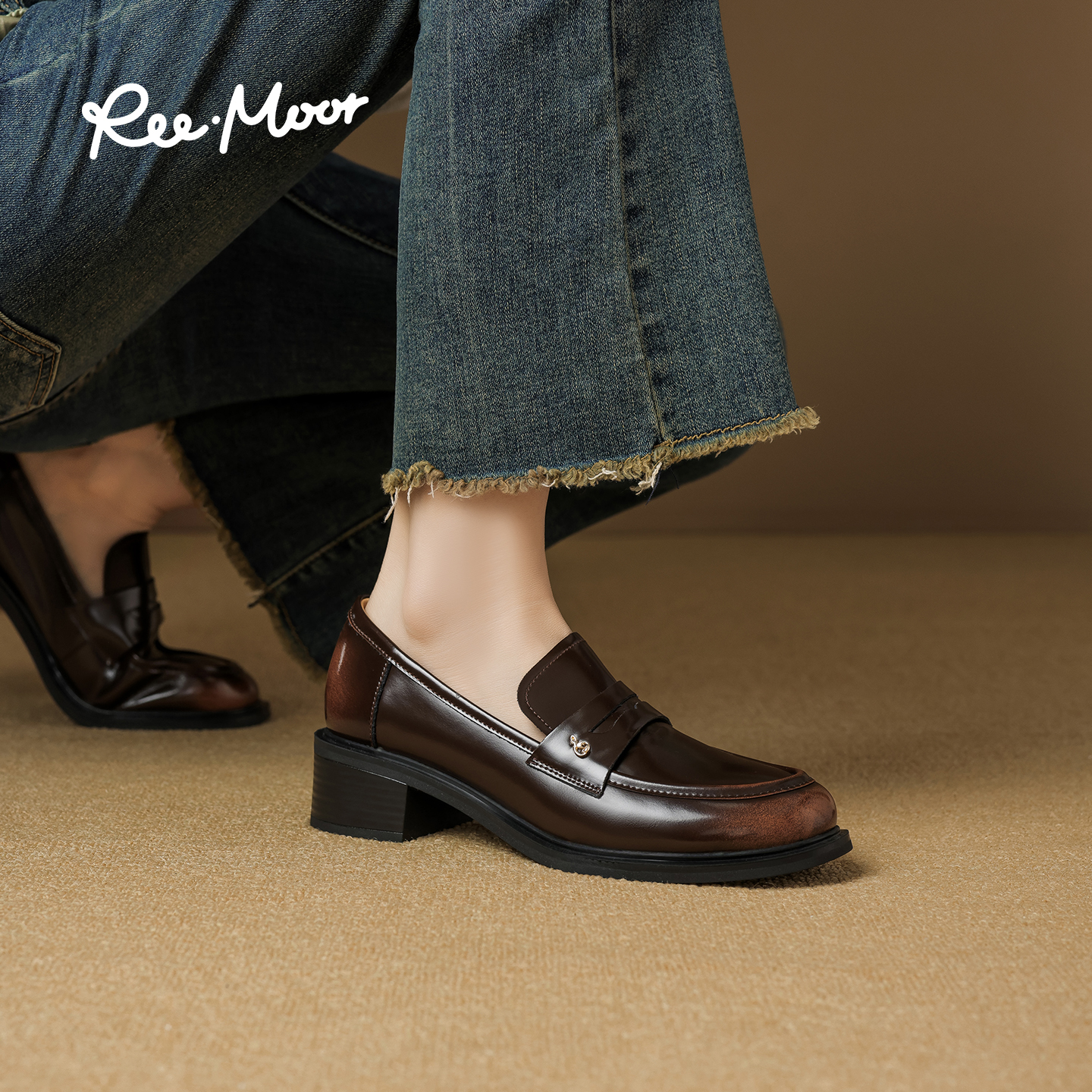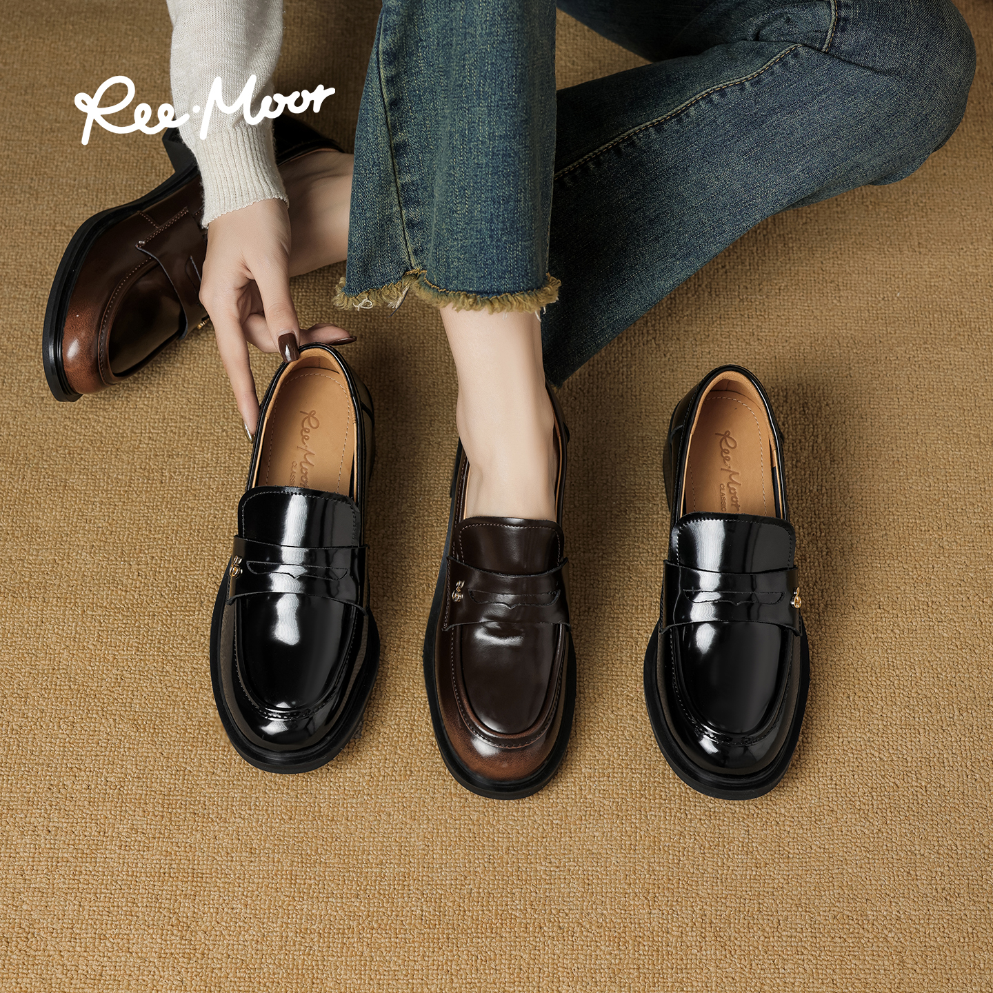 REEMOOR睿慕2025秋季新款厚底学院英伦乐福鞋女复古单鞋小皮鞋,广东 深圳