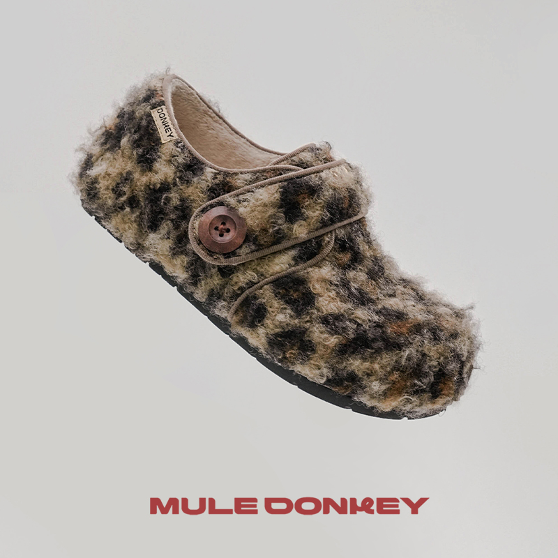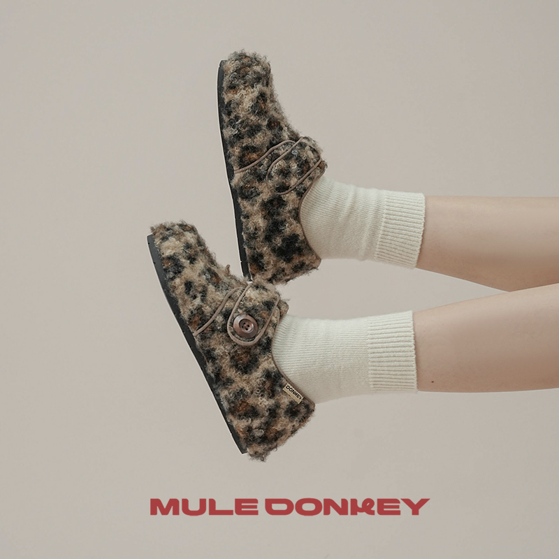 多嘴驴Donkey豹纹毛毛鞋女款秋冬加绒厚底棉鞋保暖包跟慵懒勃肯鞋