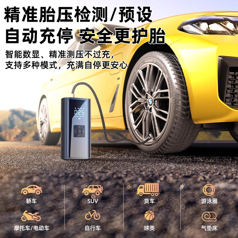 车载无线充气泵汽车用便携式打气泵电动轿车轮胎高压打气筒充气宝,浙江 杭州