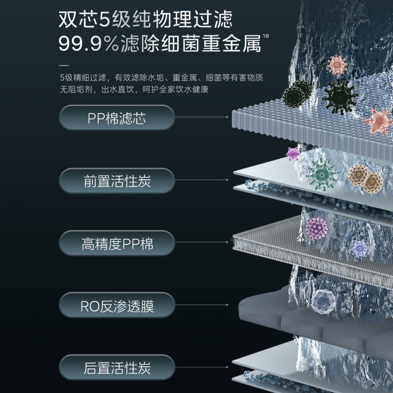 美的星河1000gpro净水器0阻垢剂厨下家用直饮RO膜反渗透直饮机