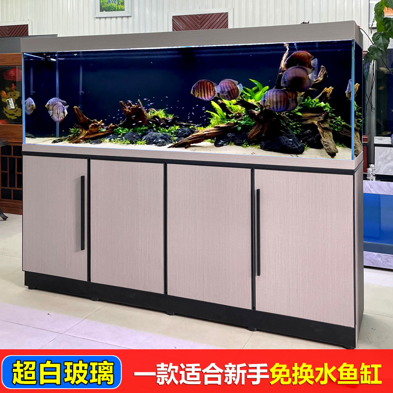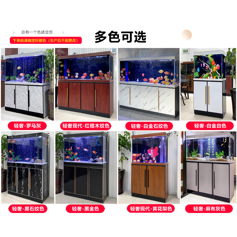 客厅轻奢现代鱼缸2022新款金鱼缸中小型超白玻璃底柜落地缸水族箱,北京