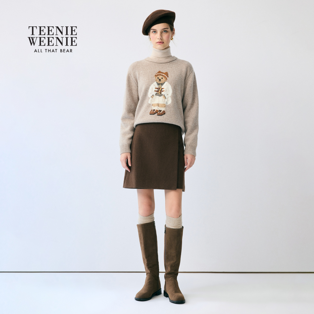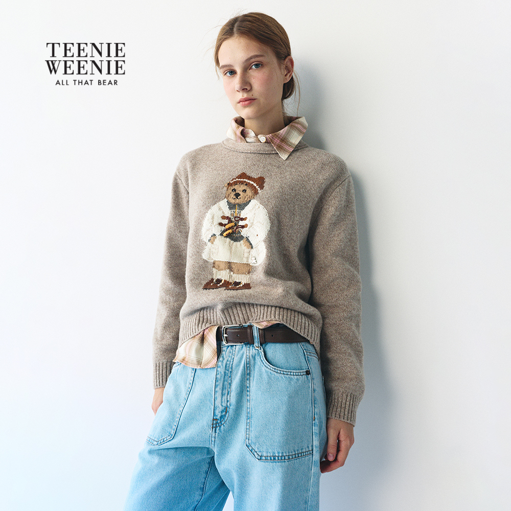 TeenieWeenie小熊女装毛针织衫2025秋季新款休闲舒适大熊提花毛衣