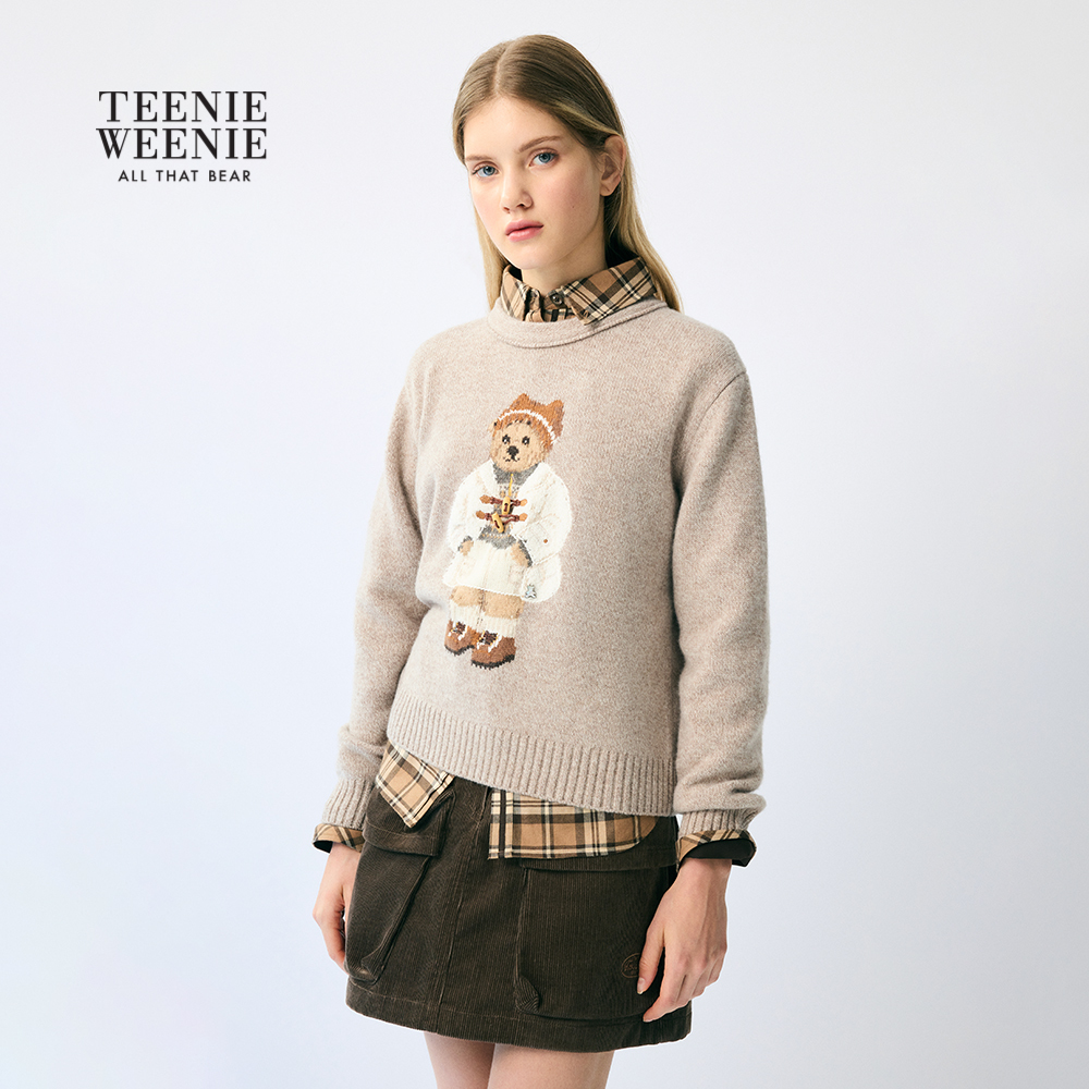 TeenieWeenie小熊女装毛针织衫2025秋季新款休闲舒适大熊提花毛衣,浙江 嘉兴