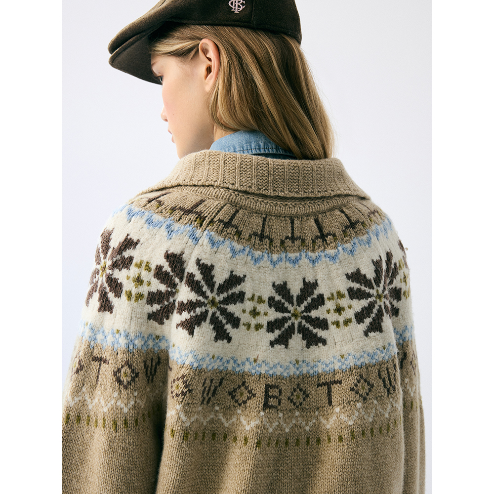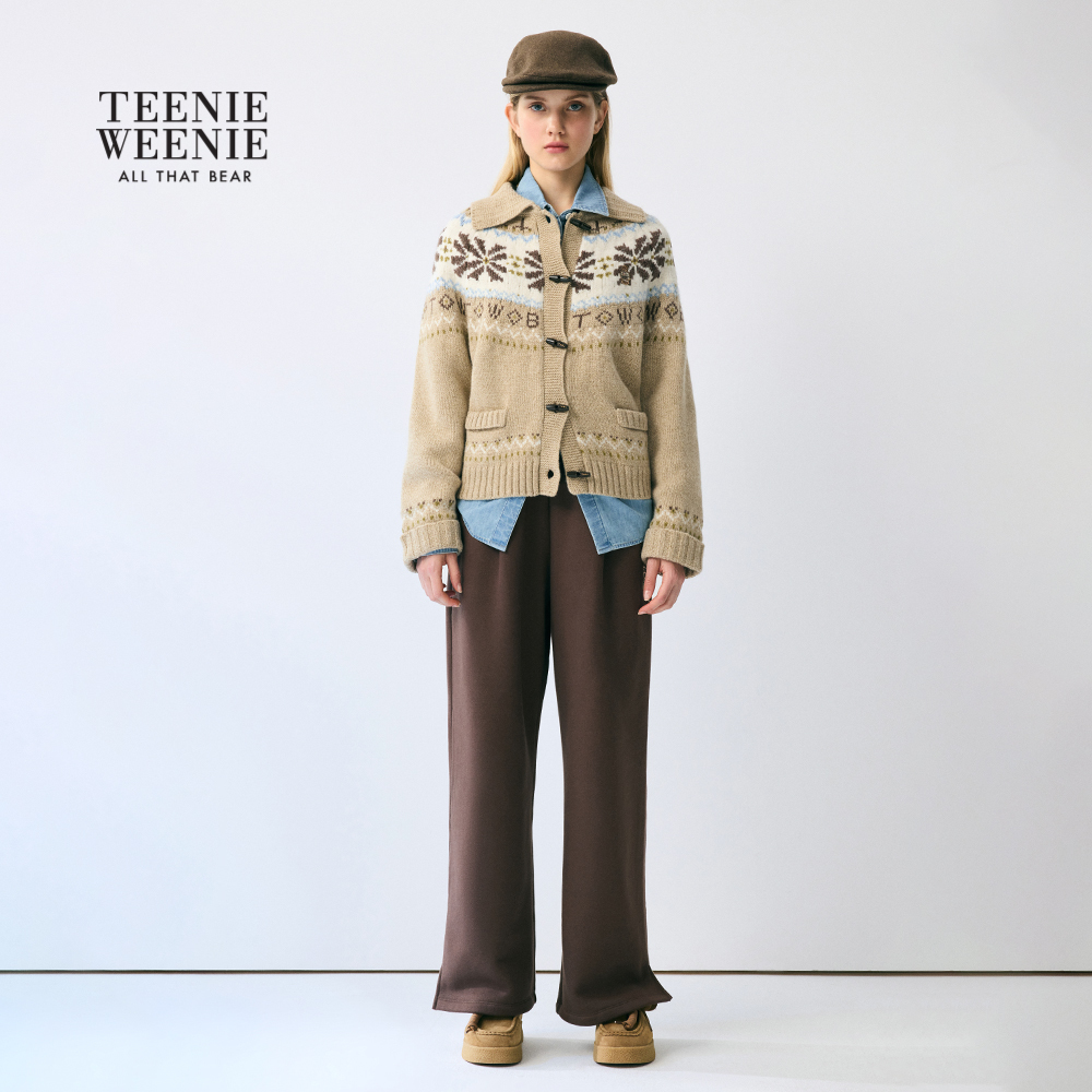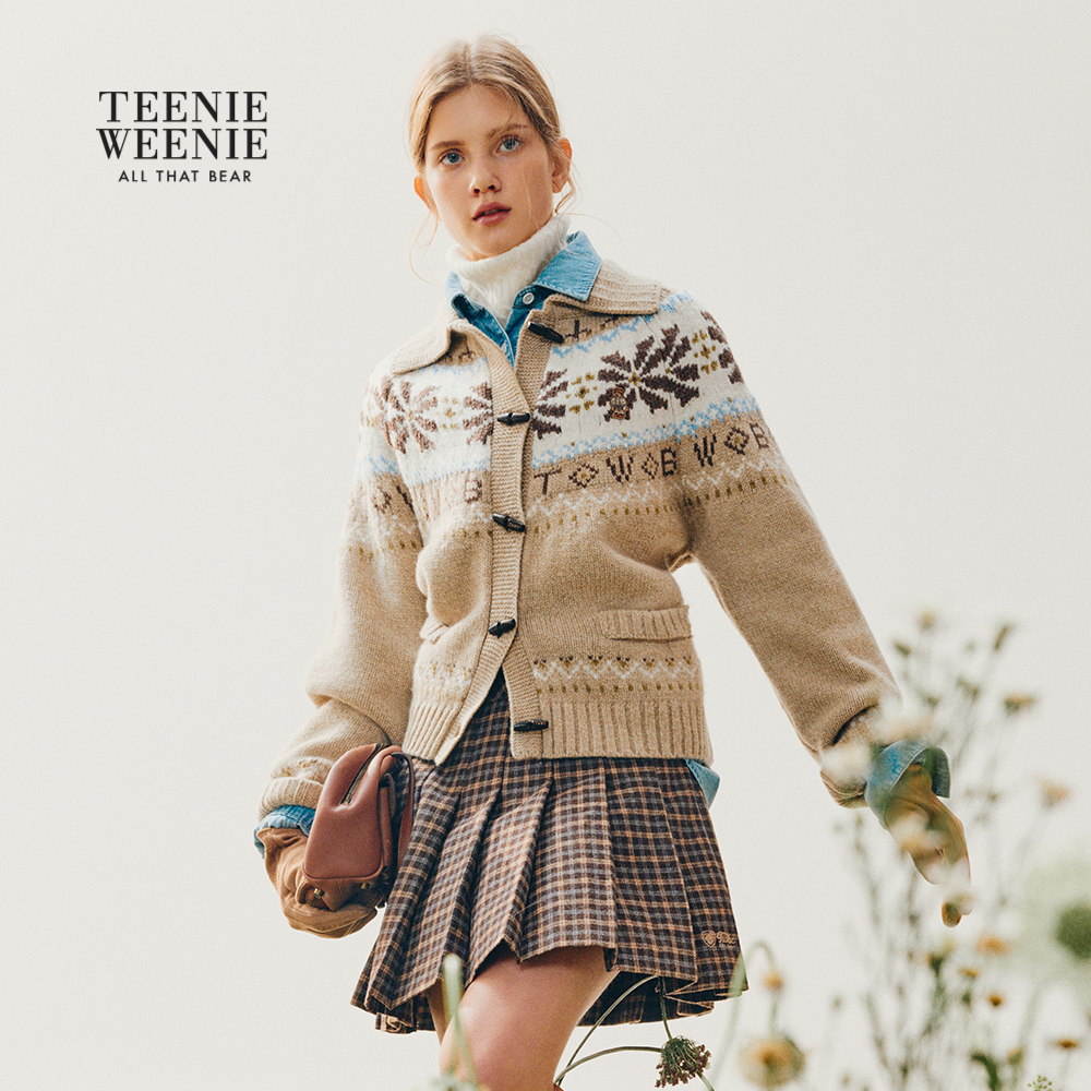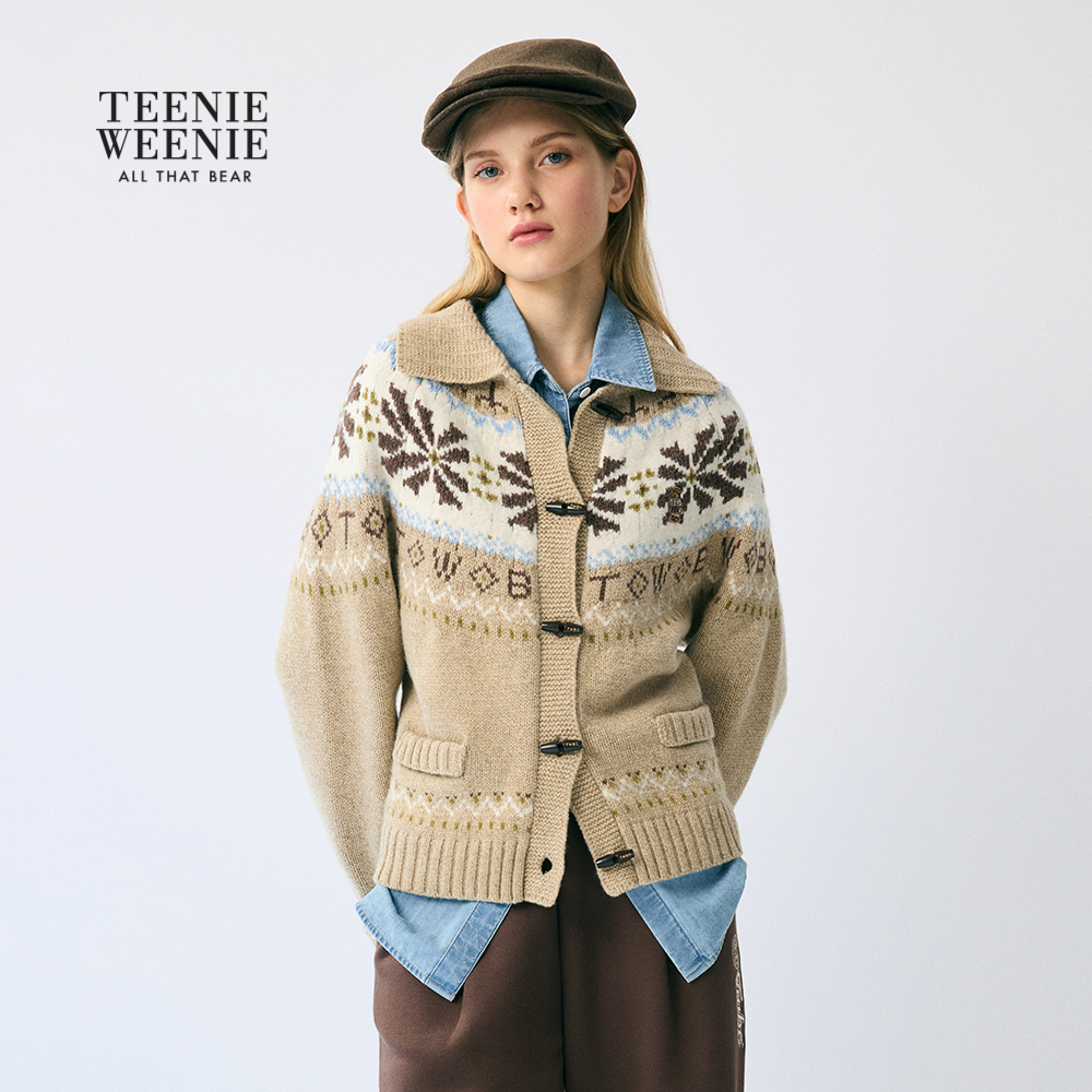 TeenieWeenie小熊女装毛针织衫2025秋季新款翻领费尔岛提花开衫,上海