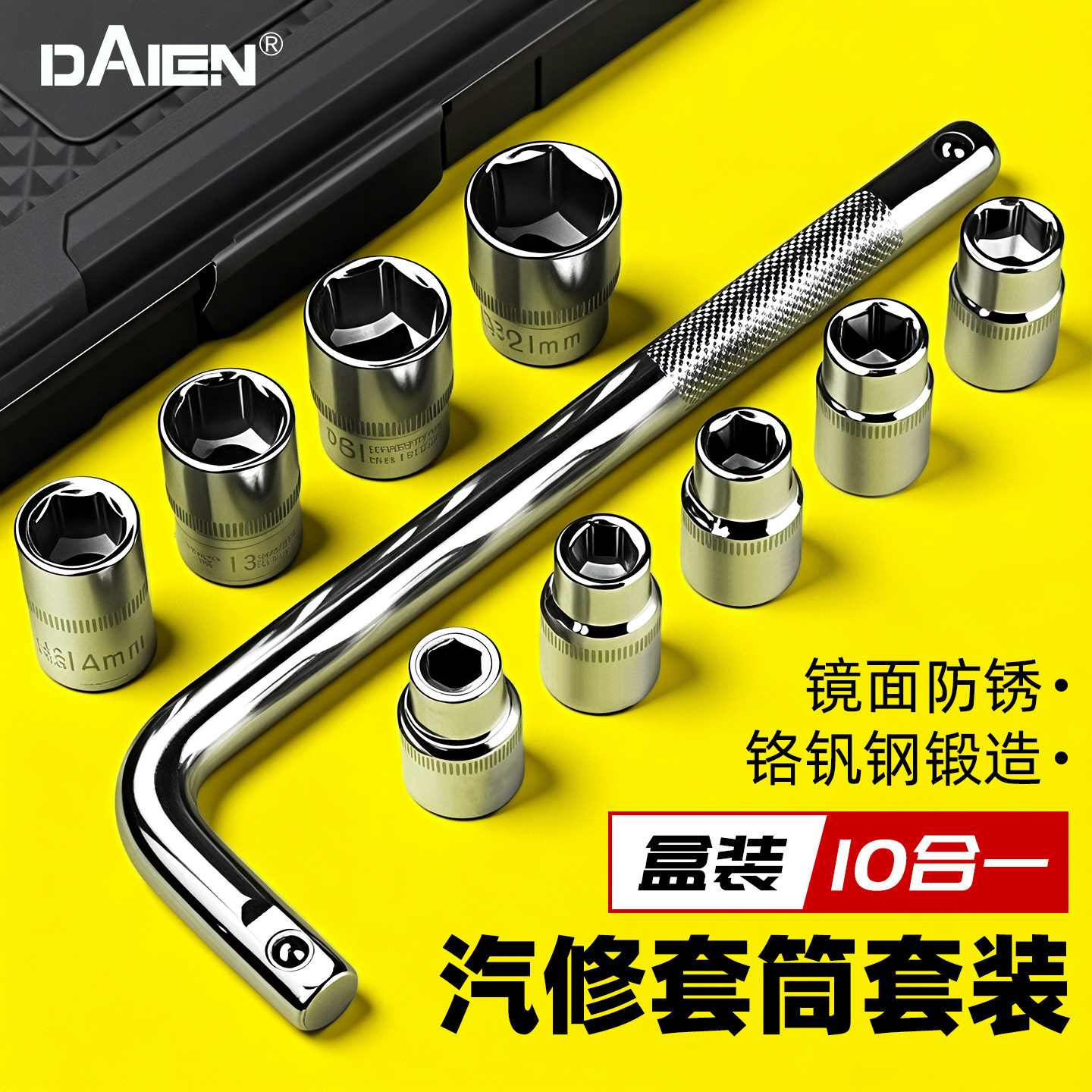 六角套筒扳手套装手动弯杆汽车轮胎家用快速维修工具自行车电动车