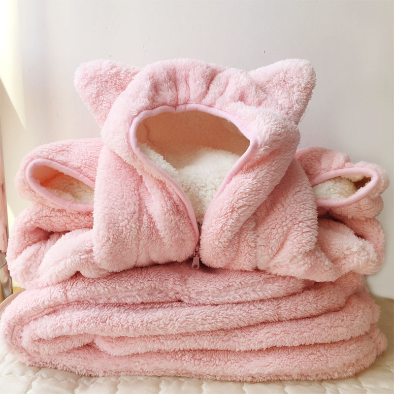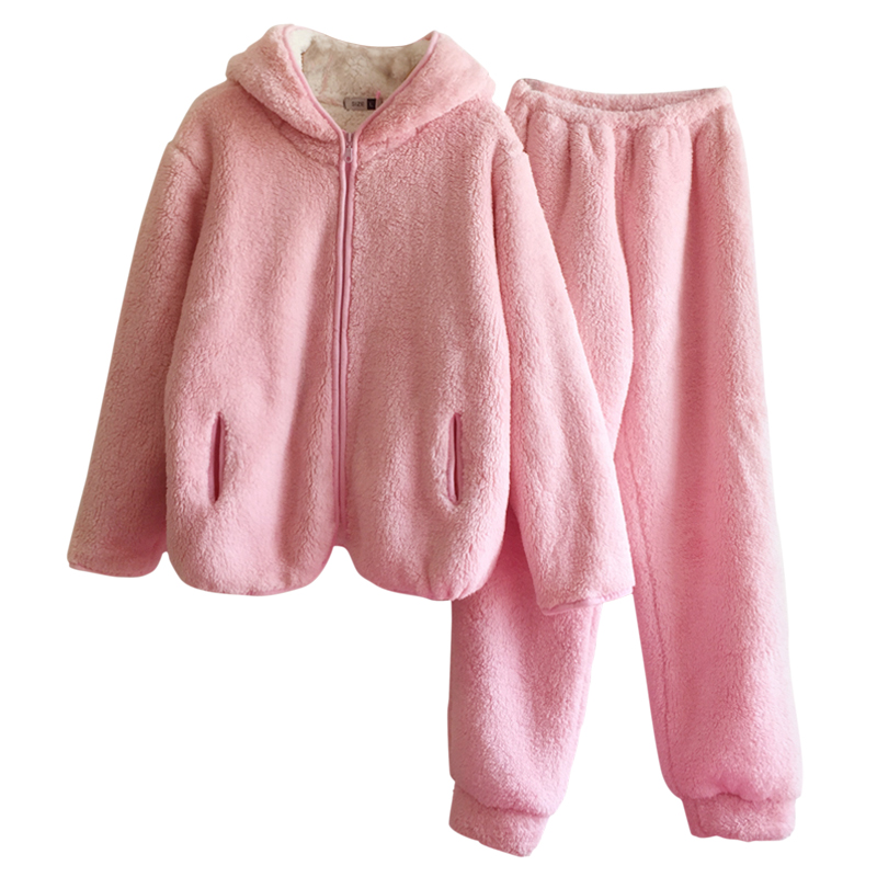 女加厚珊瑚绒睡衣冬季可爱卡通猫耳朵双层加绒学生保暖家居服套装,江苏 无锡