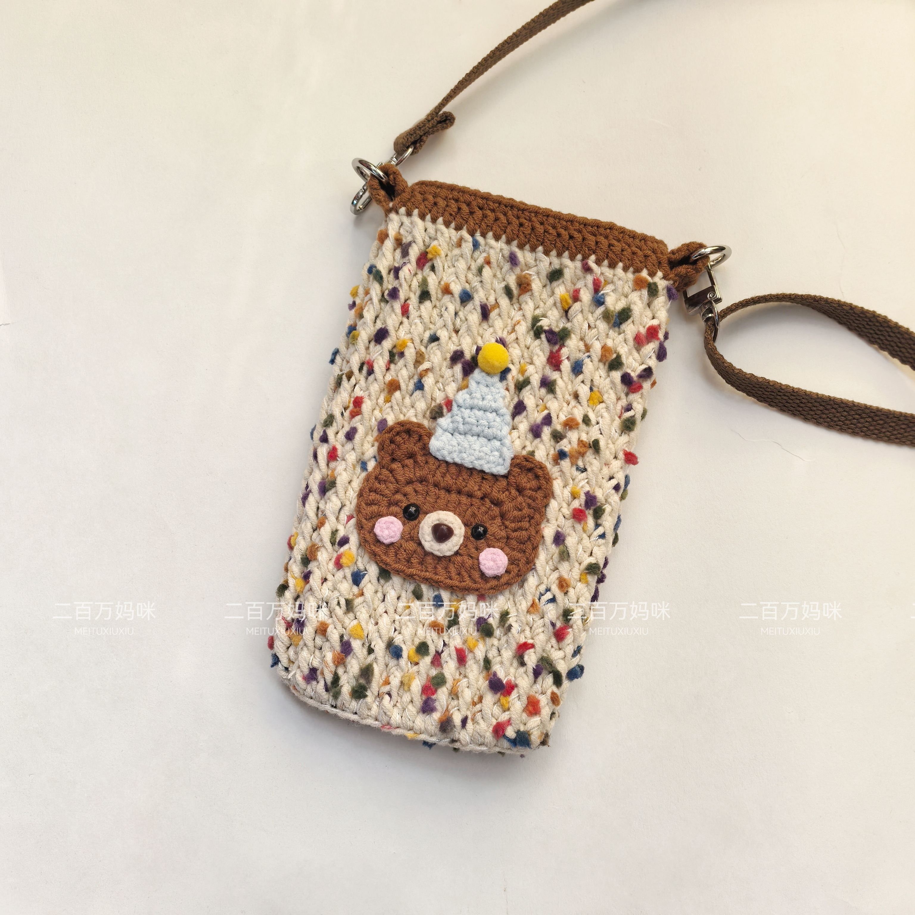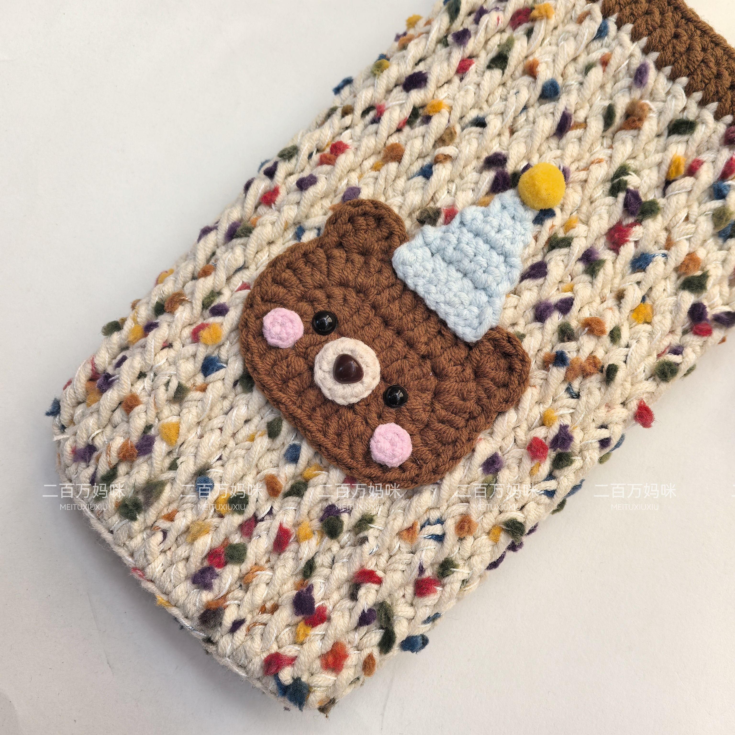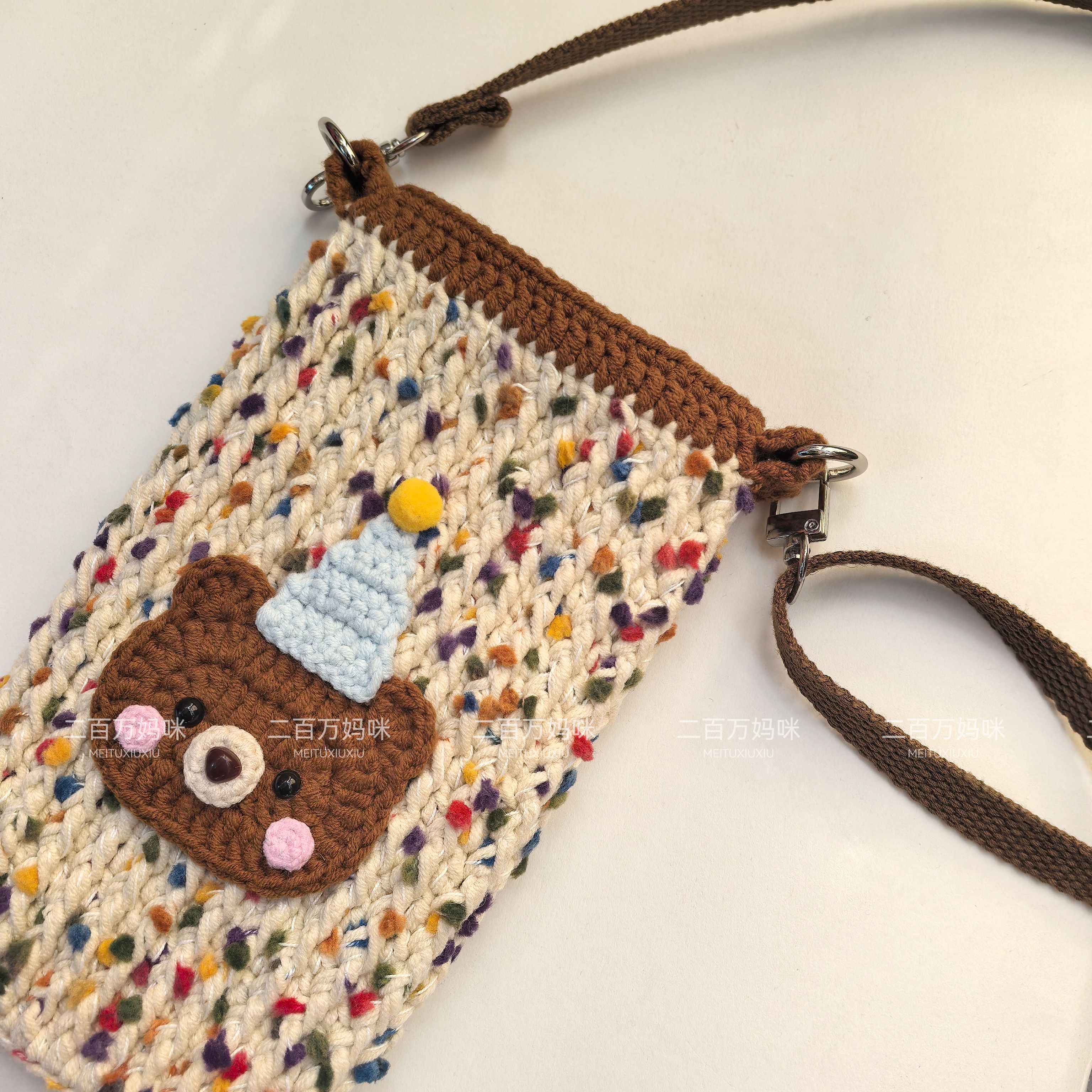 手工钩织毛线编织成品小熊手机包彩虹豆豆线Diy材料包创意礼物,安徽 合肥