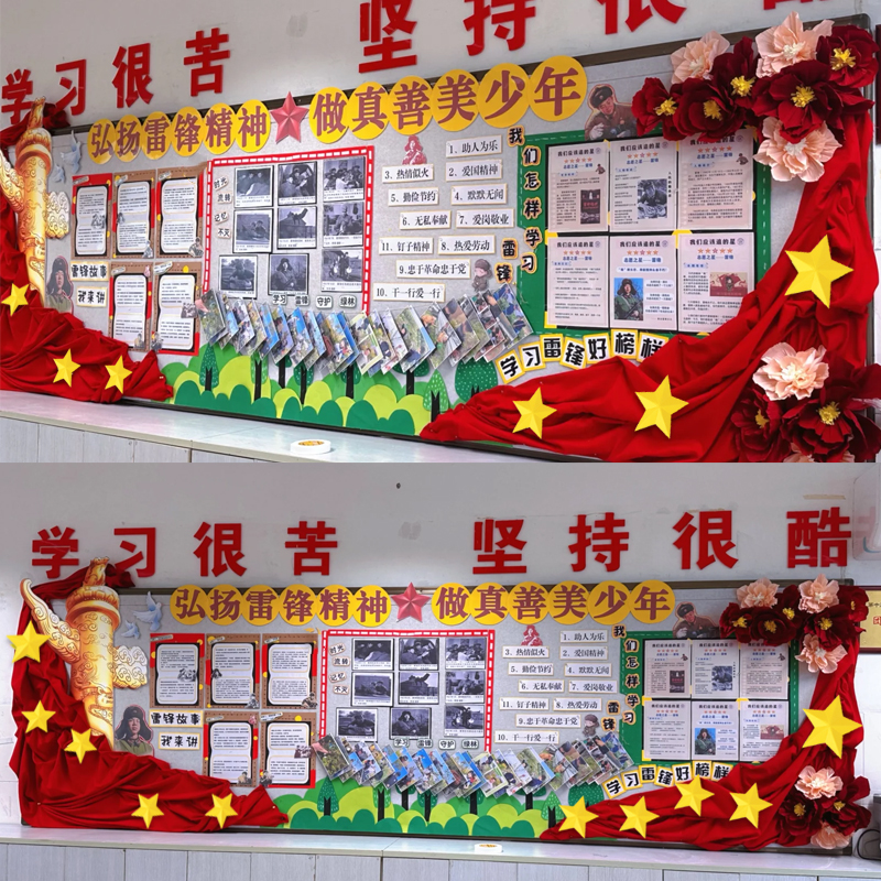 红色背景五角星星环创区角黑板组合装饰墙面布置材料学校评比文化